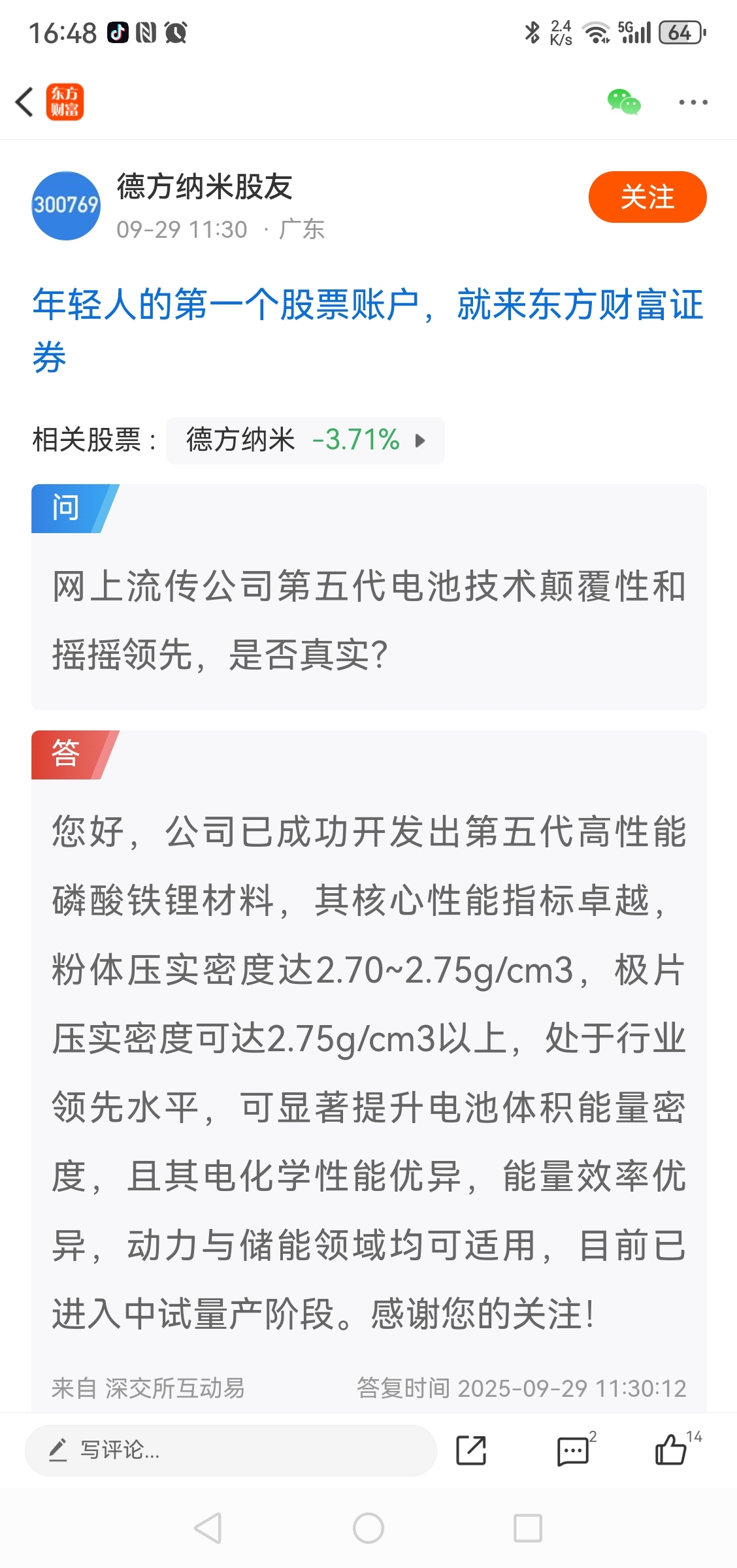 $宁德时代(SZ300750)$ 宁德时代的五代技术离不开德方纳米颠覆性5代磷酸锂的支持