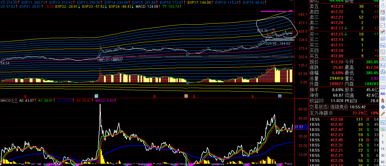417就是今天的高点,下午将会回落,但不会手收阴线高位横盘出货