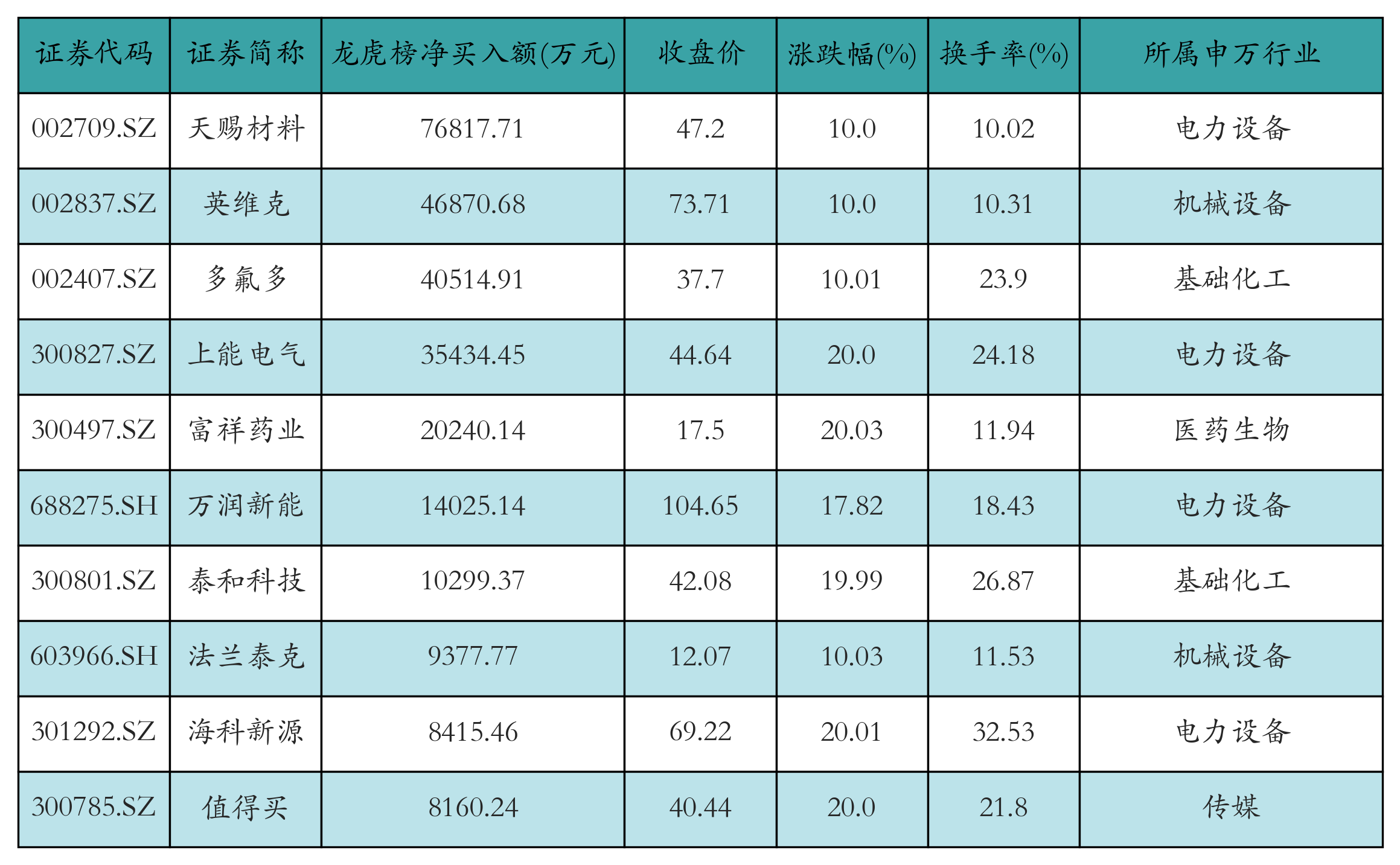四、龙虎榜情况
