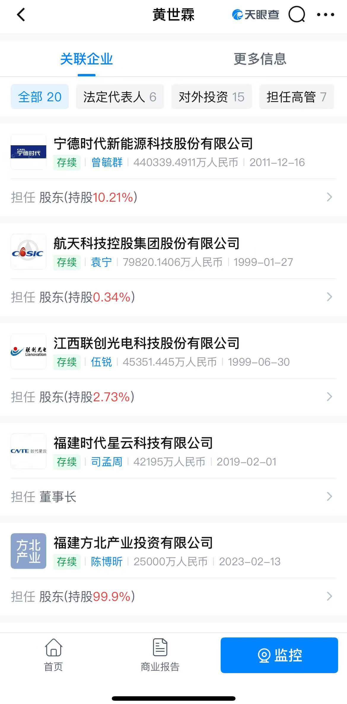 天眼查显示,目前,黄世霖为10余家公司的股东,其中包括福建时代星云科技有限公司(以下简称时代星云)、福建集新光储充检技术有限公司、福建集智储能技术有限公司等多家储能相关的企业。