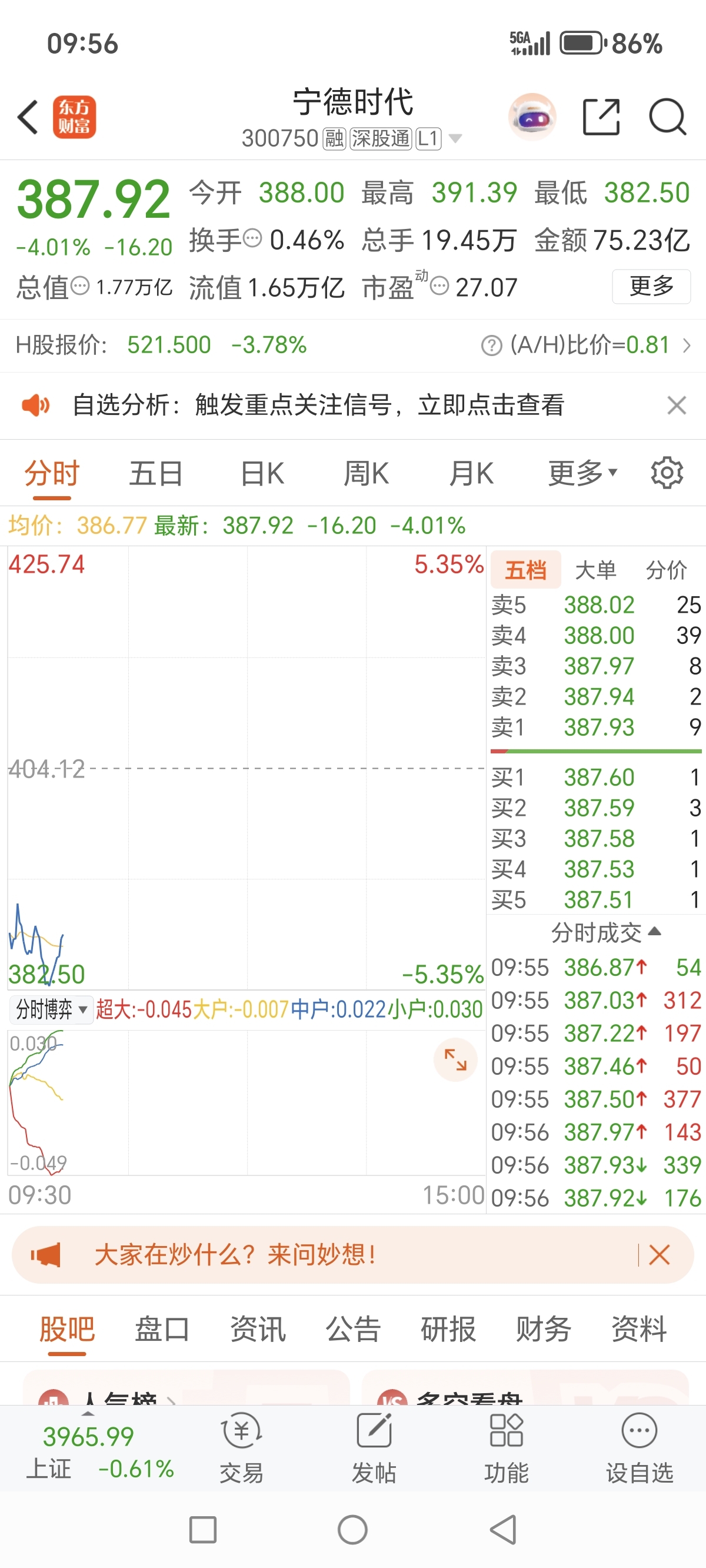 $宁德时代(SZ300750)$ $上证指数(SH000001)$ 宁德时代大跌,我朋友想抄底,他问我能抄嘛?我该怎么回复他?