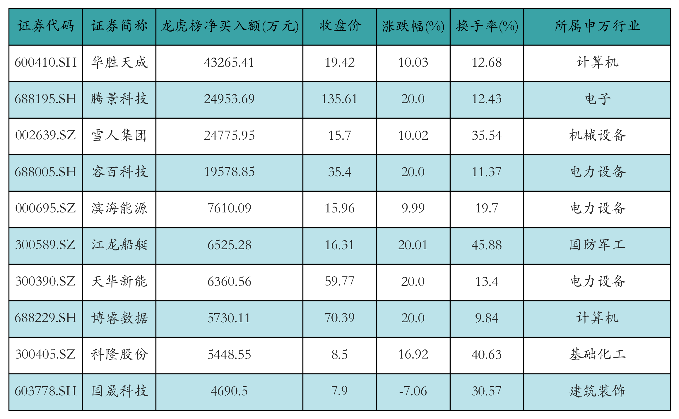 昨日龙虎榜营业部净买入额前10详情见下表: