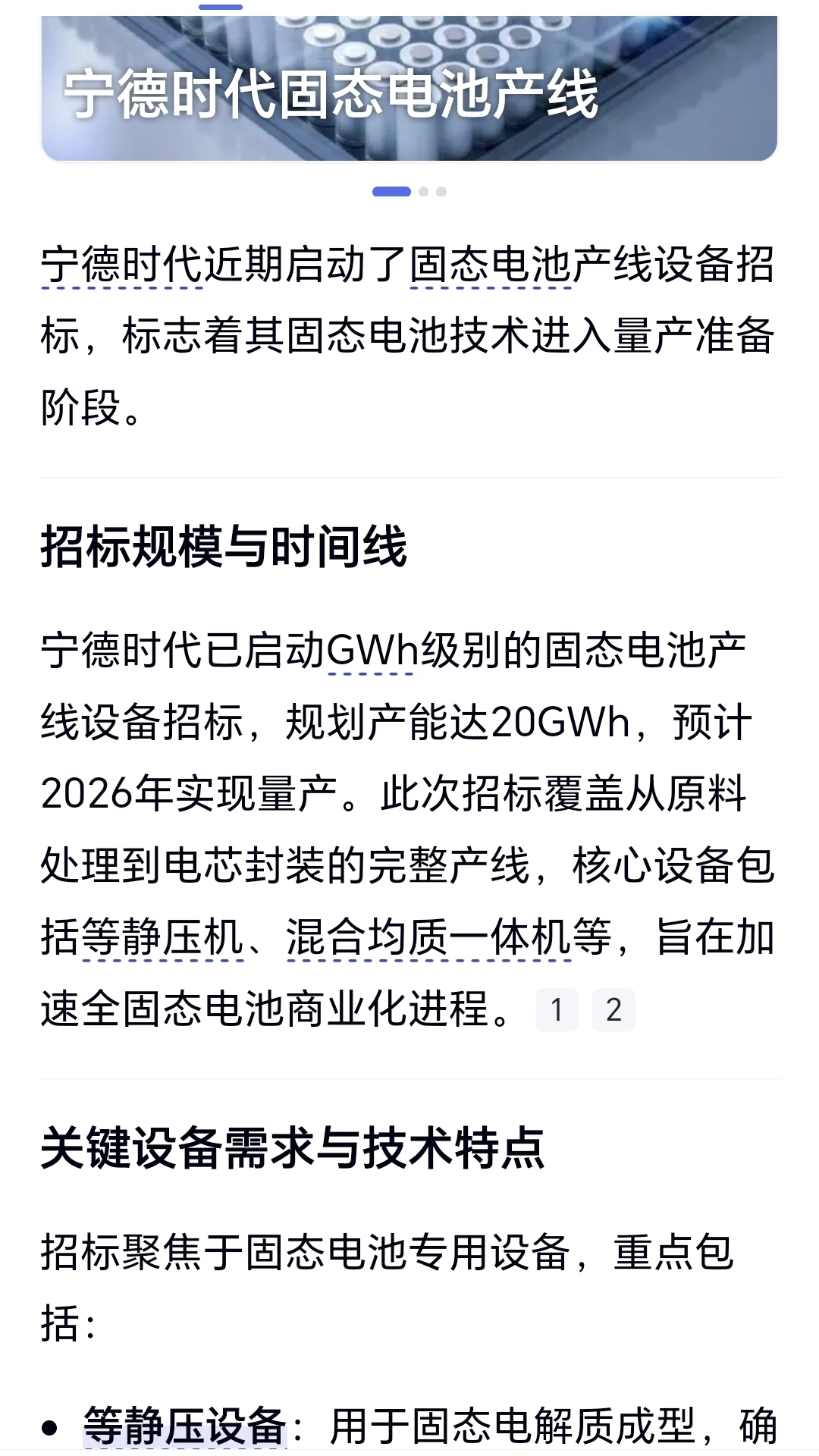 $宁德时代(SZ300750)$ 宁德时代已经启动GWH固态电池生产线招标,这个是真的吗?