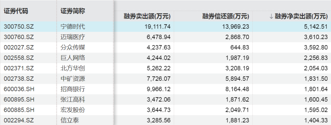 11月融券净卖出额居前的股票为宁德时代、迈瑞医疗、分众传媒,分别为5142.51万元、3610.23万元、3592.80万元。