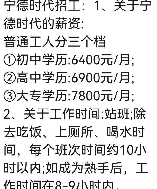 好坏不知道,反正宁德时代在安徽合肥在盖工厂!这个薪资待遇应该还是不错了。产能扩大