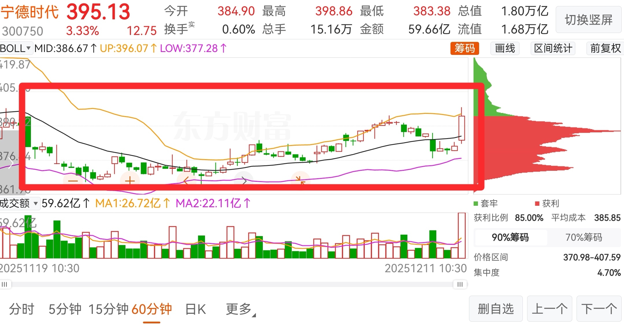 $宁德时代(SZ300750)$ 标准形态的胜率很高。虽然不是很标准,如果有效站上395就有可能去到423以上。如果有效跌破385,那形态就破坏了。