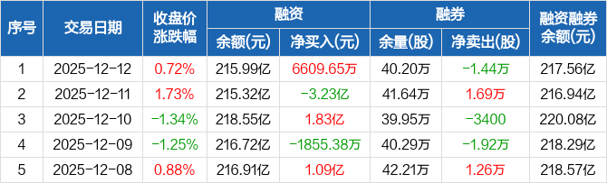 宁德时代:融资净买入6609.65万元,融资余额215.99亿元(12-12)