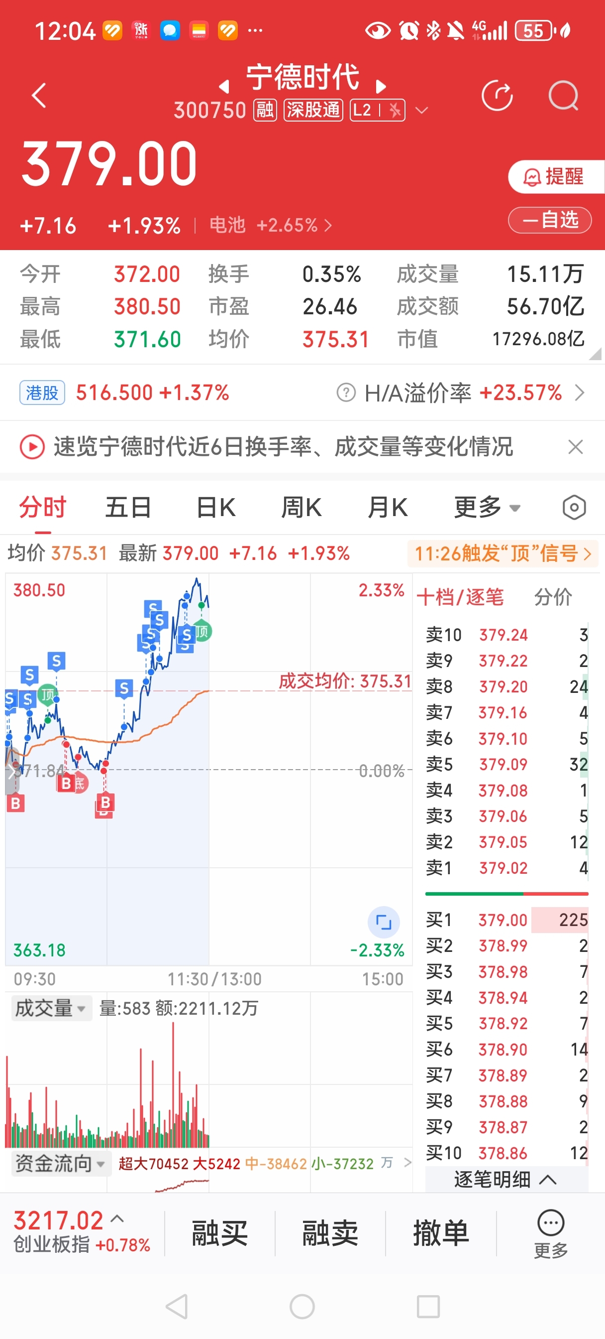 宁王卖飞,昨天买的也很烂。主要原因是走势不顺畅。也没法预估区间。更愿意相信宁王在350-400的区间震荡。今天开心的事是买了10多万新能源地位股,走势喜人。希望明天给机会跑路。年底了我还是想跑路,真要是这个位置拉起来,错过就错过了。