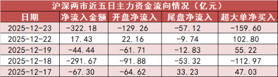 今日A股市场主力资金开盘净流出129.26亿元,尾盘净流出57.12亿元,全天净流出322.18亿元。