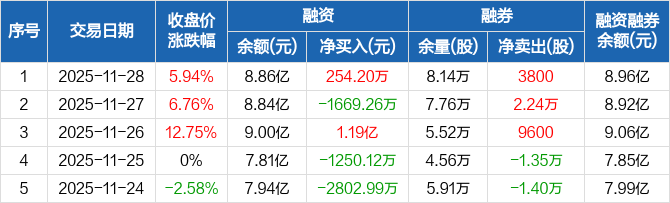 迈为股份:融资净买入254.2万元,融资余额8.86亿元(11-28)