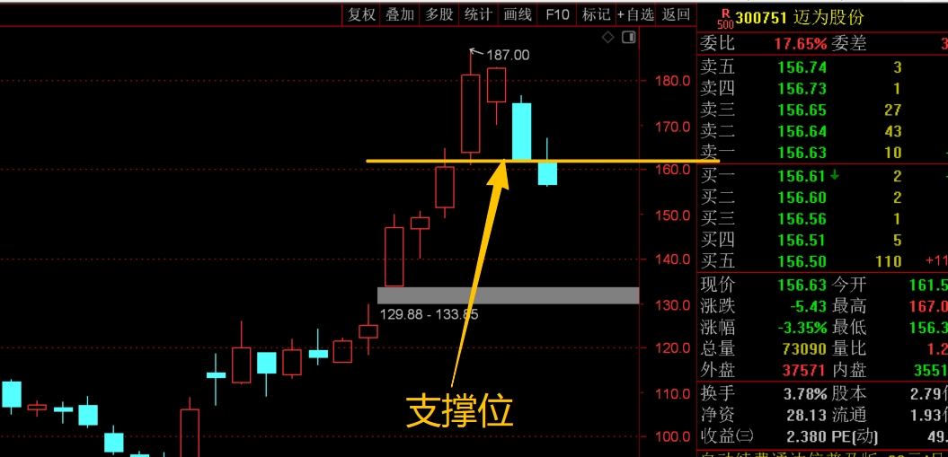 $迈为股份(SZ300751)$ 近期走势比较强,但这两天回落调整,主要是很黄色横线支撑位的情况,能拉起来站稳短线就没问题,继续震荡看涨,但拉不起来就要注意短线的回调风险了,需要控制仓位应对。#炒股日记# #强势机会#