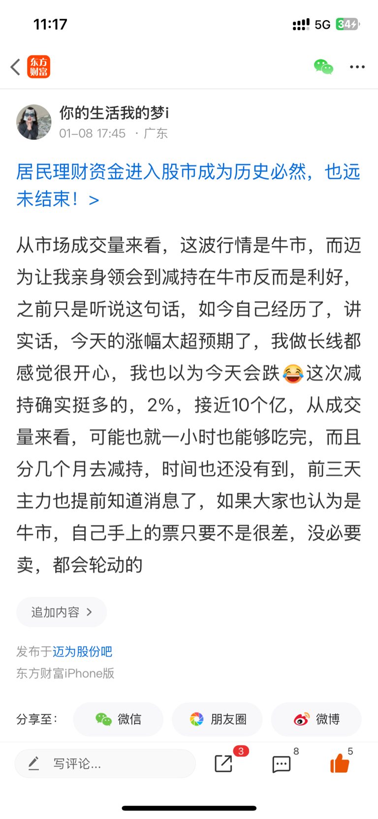 温馨提示: 1.根据《证券法》规定,禁止编造、传播虚假信息或者误导性信息,扰乱证券市场;2.用户在本社区发表的所有资料、言论等仅代表个人观点,与本网站立场无关,不对您构成任何投资建议。用户应基于自己的独立判断,自行决定证券投资并承担相应风险。《东方财富社区管理规定》
