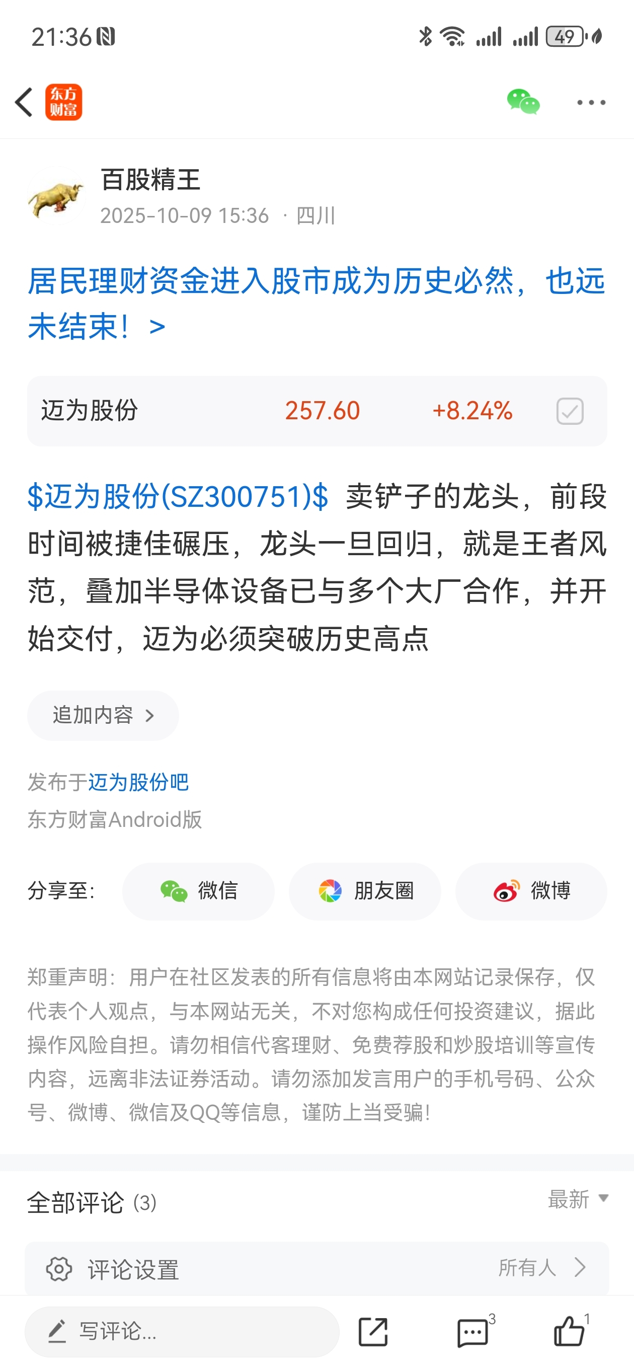 温馨提示: 1.根据《证券法》规定,禁止编造、传播虚假信息或者误导性信息,扰乱证券市场;2.用户在本社区发表的所有资料、言论等仅代表个人观点,与本网站立场无关,不对您构成任何投资建议。用户应基于自己的独立判断,自行决定证券投资并承担相应风险。《东方财富社区管理规定》
