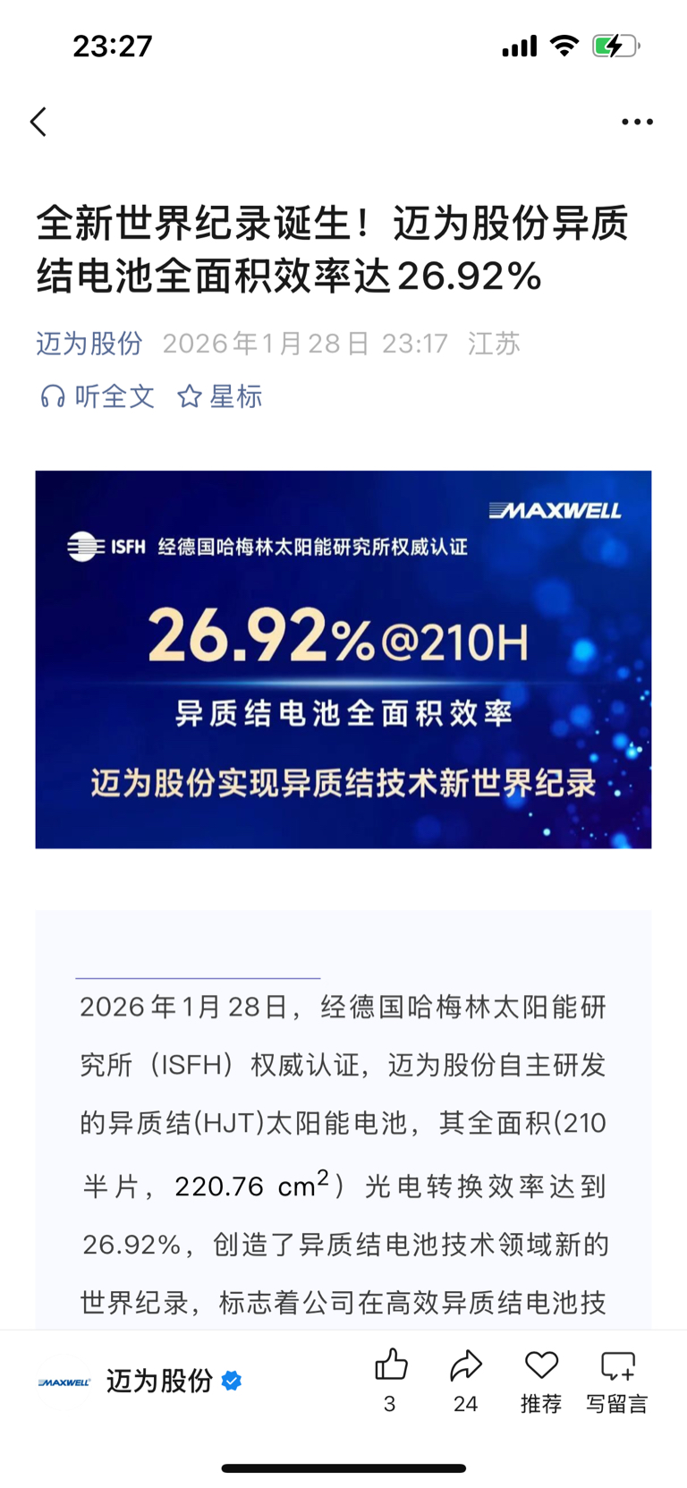 $迈为股份(SZ300751)$ 公司半夜发利好,也真是拼