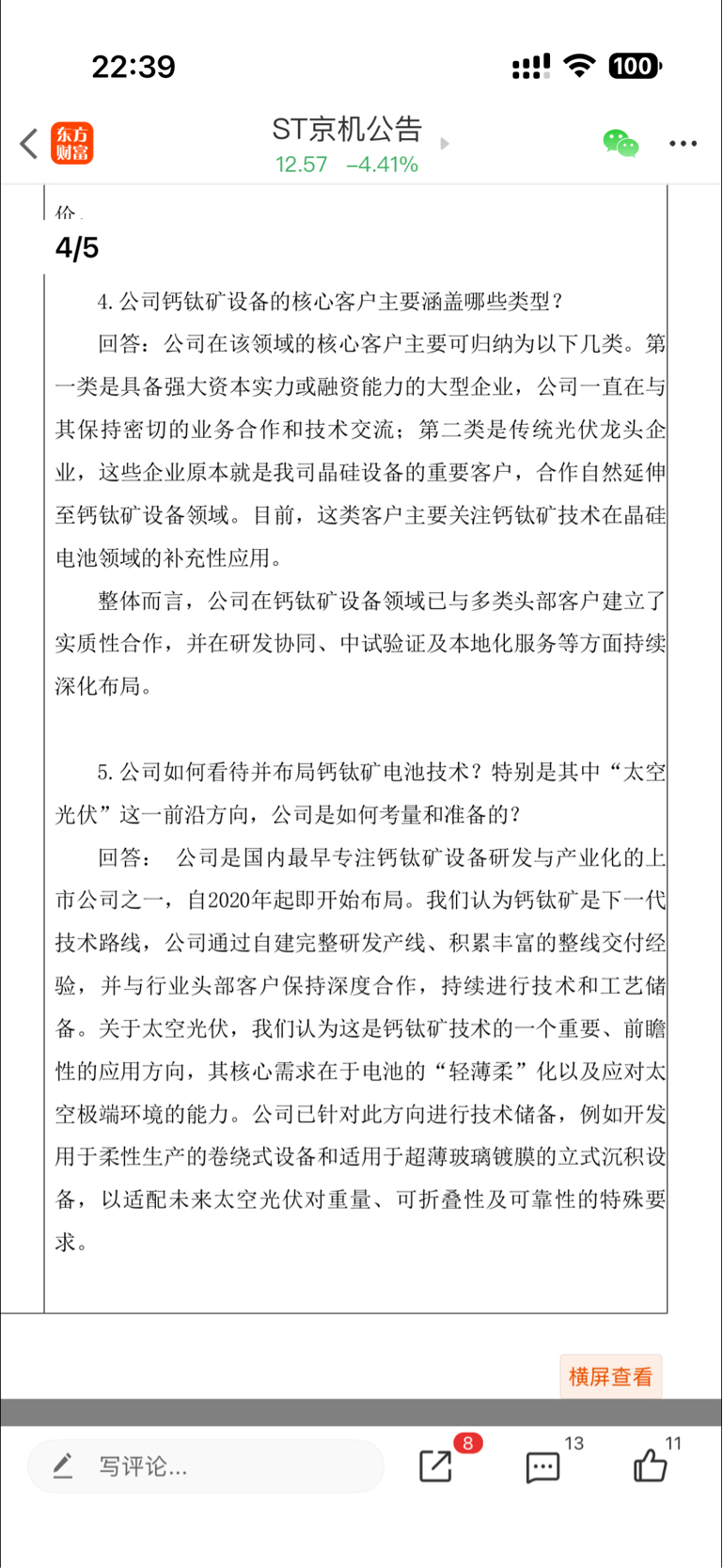 $迈为股份(SZ300751)$ 近百家机构、证券公司、基金调研ST京机?居然不是迈为?也不是捷佳?是一个ST公司,关键是重点问了太空光伏,什么情况啊?