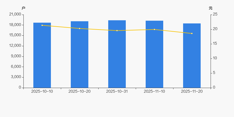 2025年10月10日至今,公司股东户数有所下降,区间跌幅为1.16%。2025年10月10日至2025年11月20日区间股价下降13.07%。