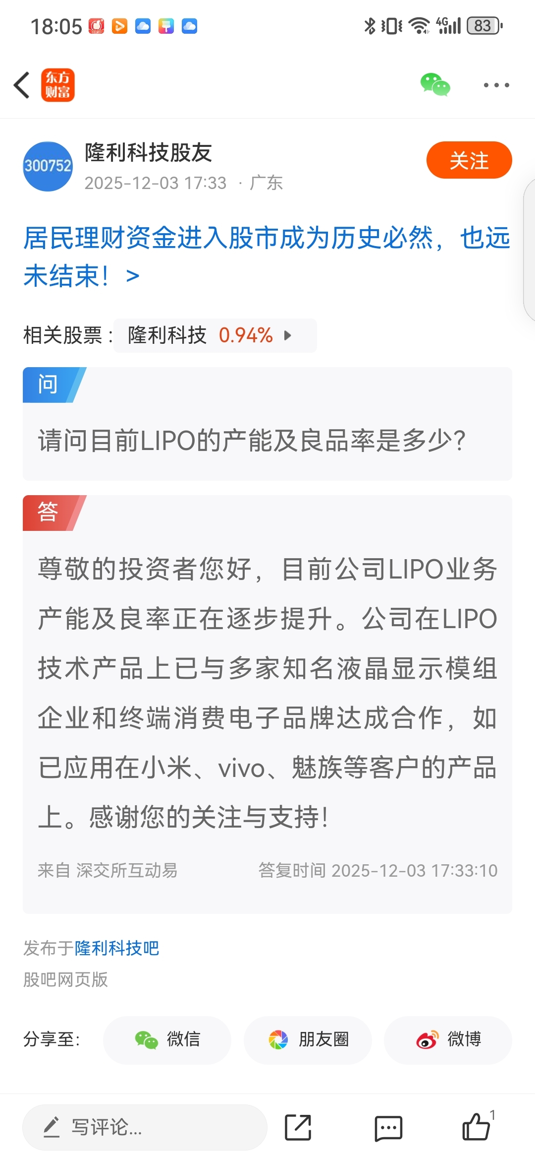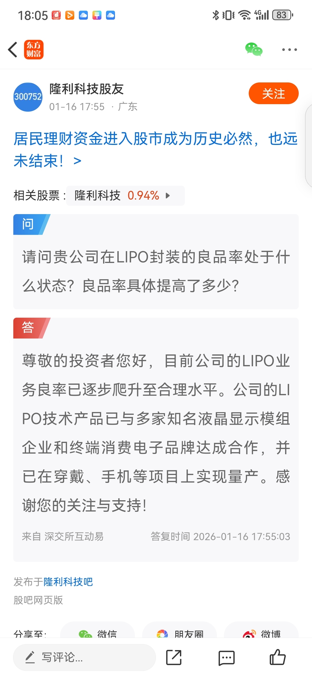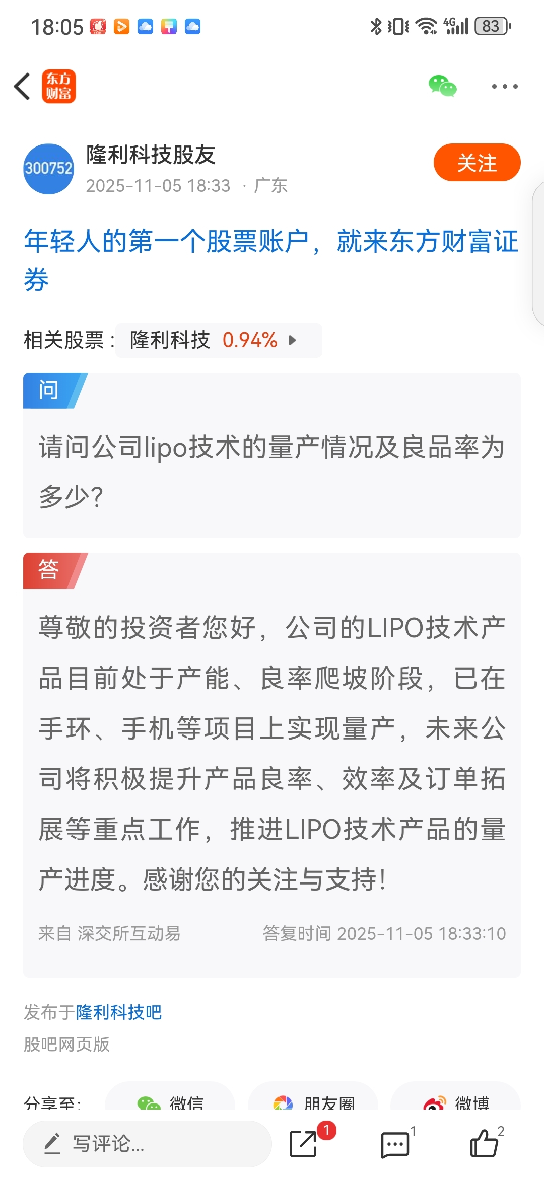 $隆利科技(SZ300752)$ 连续性三个月的表述,一个月比一个月更上层楼,2026年元月已经达量产合理的水平,公司在努力,2026年有希望一季报应该有看点!