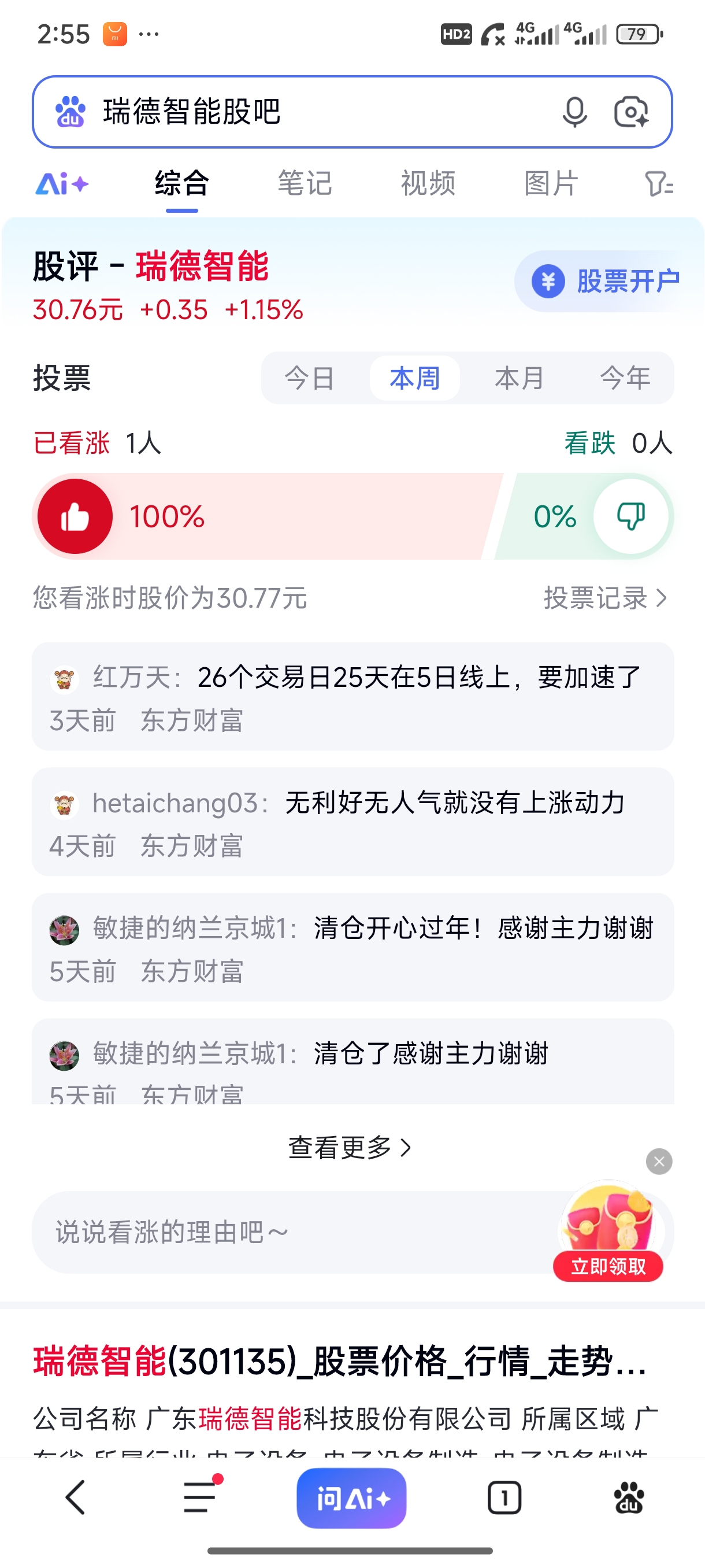 瑞德智能散户少,所以会一直涨!
