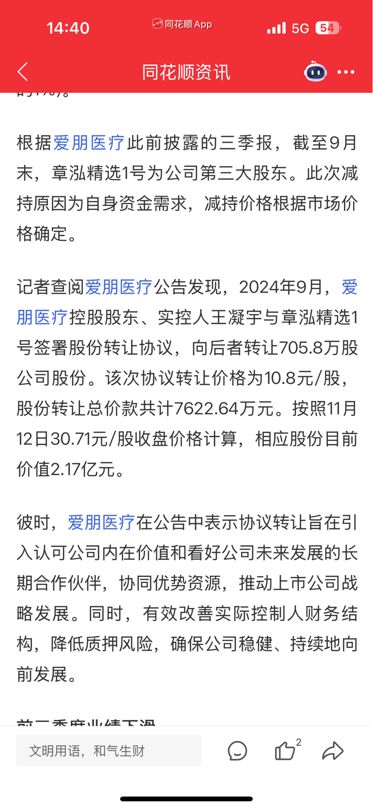 $爱朋医疗(SZ300753)$ 10.8的价格现在减持没毛病赚钱该走就走