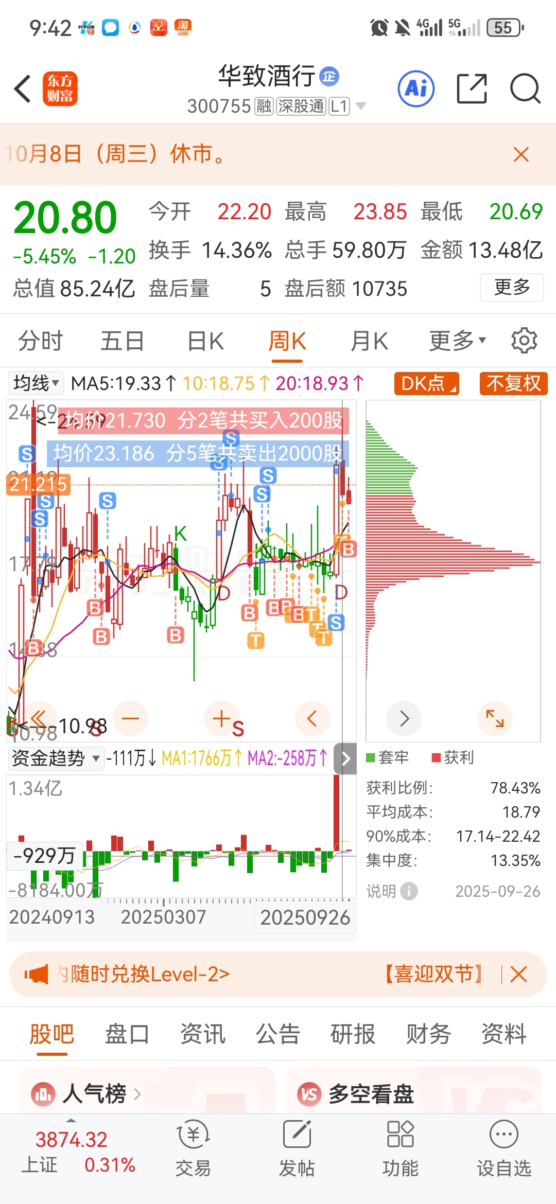 $华致酒行(SZ300755)$ 开始建仓600股,预计到18建仓回原来持有量