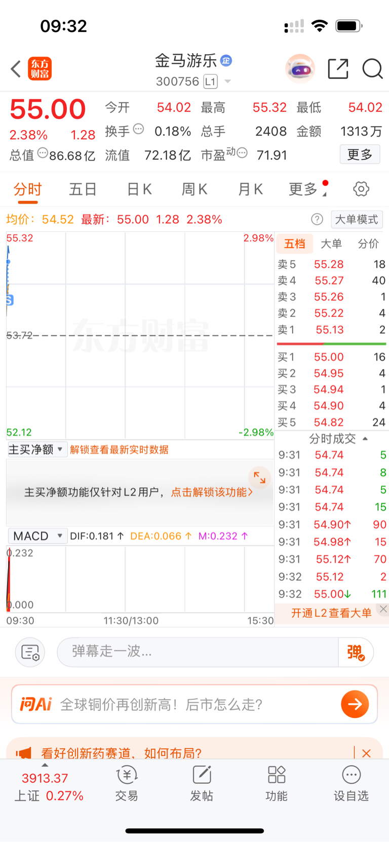 $金马游乐(SZ300756)$ 完了卖飞了,习惯性的以为冲高回落