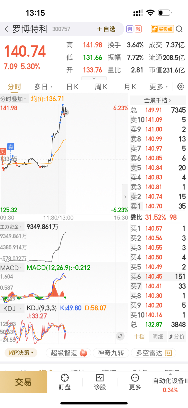 $罗博特科(SZ300757)$ 给你们喷子看看。现在等回落。看踢没踢飞