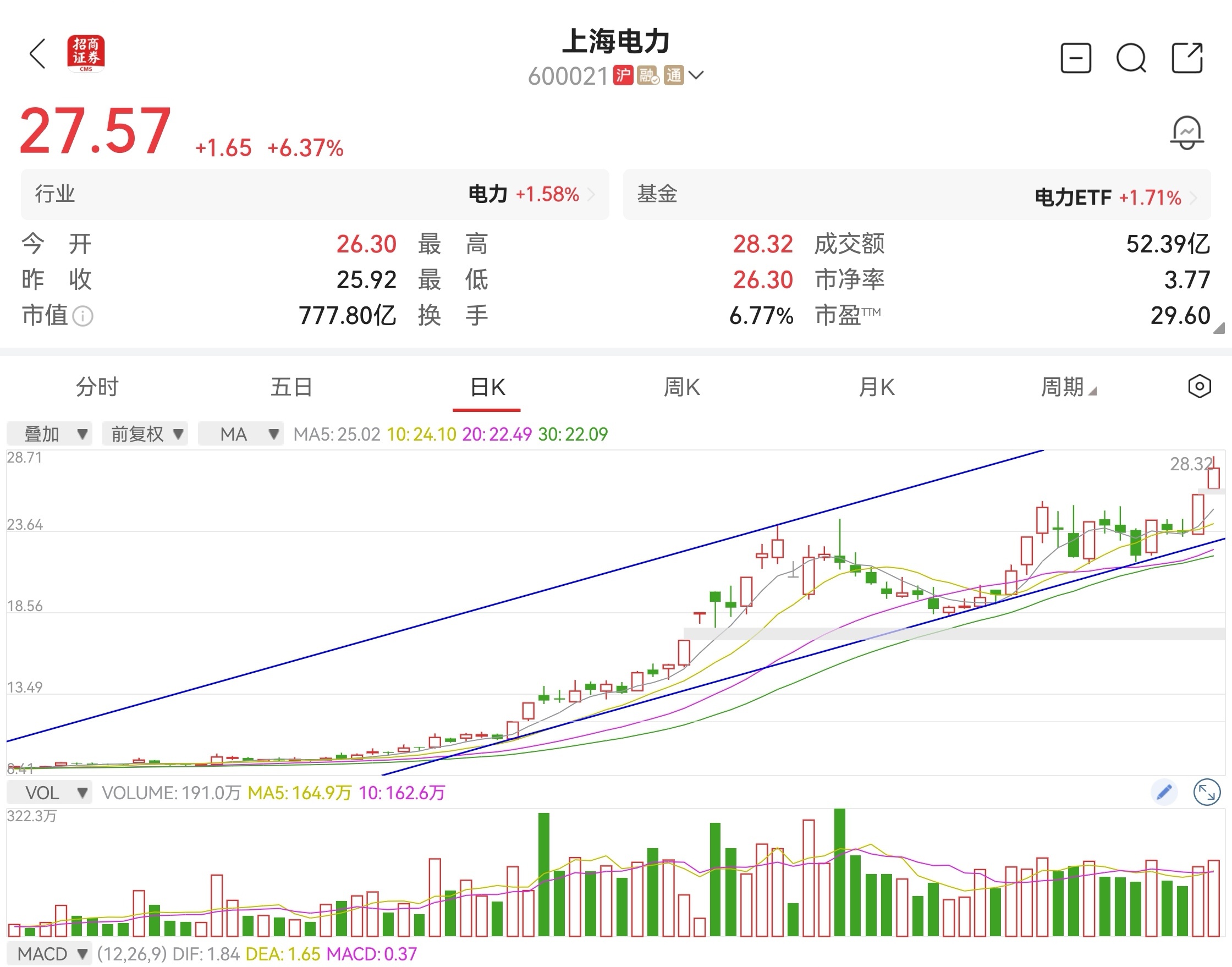 牛市里所有的资产都将重估,$上海电力(SH600021)$超越前期高点33元多是大概率的事情。
