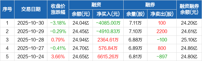 罗博特科:融资净偿还4085万元,融资余额24.04亿元(10-30)
