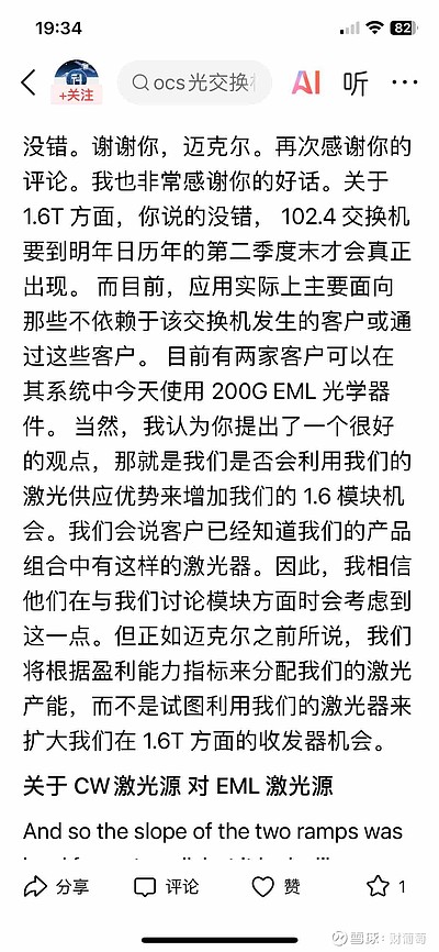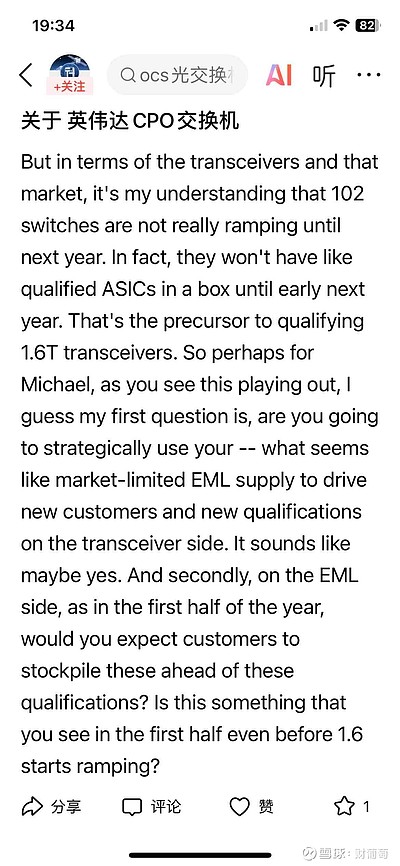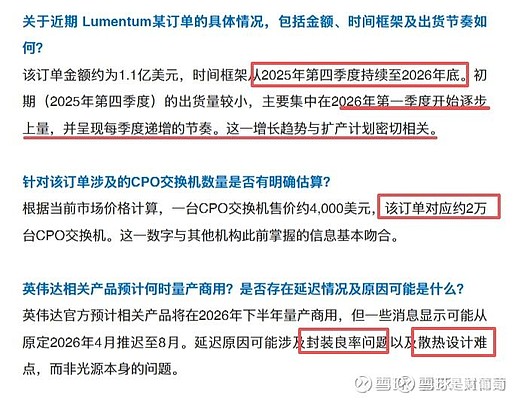 Lumentum的电话会提到一些日期,达子下单2万台CPO 交换机激光器已经有意义的贡献,看来CPO 交换机进度比想象的要快。