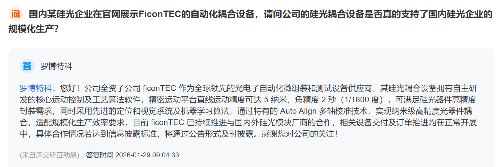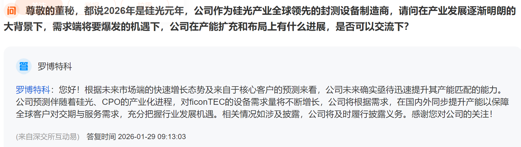 董秘答复课代表:设备已经放量,合作伙伴顶级且领域非常广,静待花开
