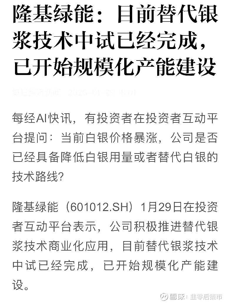 技术破冰隆基官宣铜电镀中试线验证成功并启动量产标志着N型电池HJT/TOPCon金属化环节迎来成本拐点银浆占电池非硅成本30%以上而铜电镀可降本50%+并提升转换效率0.3%-0.5%在白银价格波动加剧COMEX库存骤降交割危机频发的当下技术替代已从可选项变为必选项