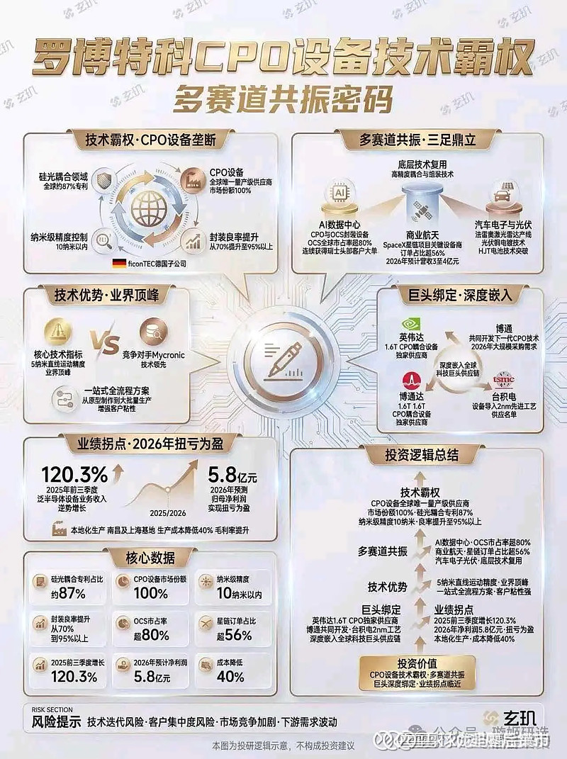 罗博特科的进击之路是高端制造企业通过技术并购+战略聚焦实现价值跃迁的典范在白银替代与硅光革命的双重浪潮下公司凭借全球硅光封装设备市占率第一铜电镀整线解决方案稀缺供应商等硬核壁垒正从细分龙头迈向跨赛道智能制造平台