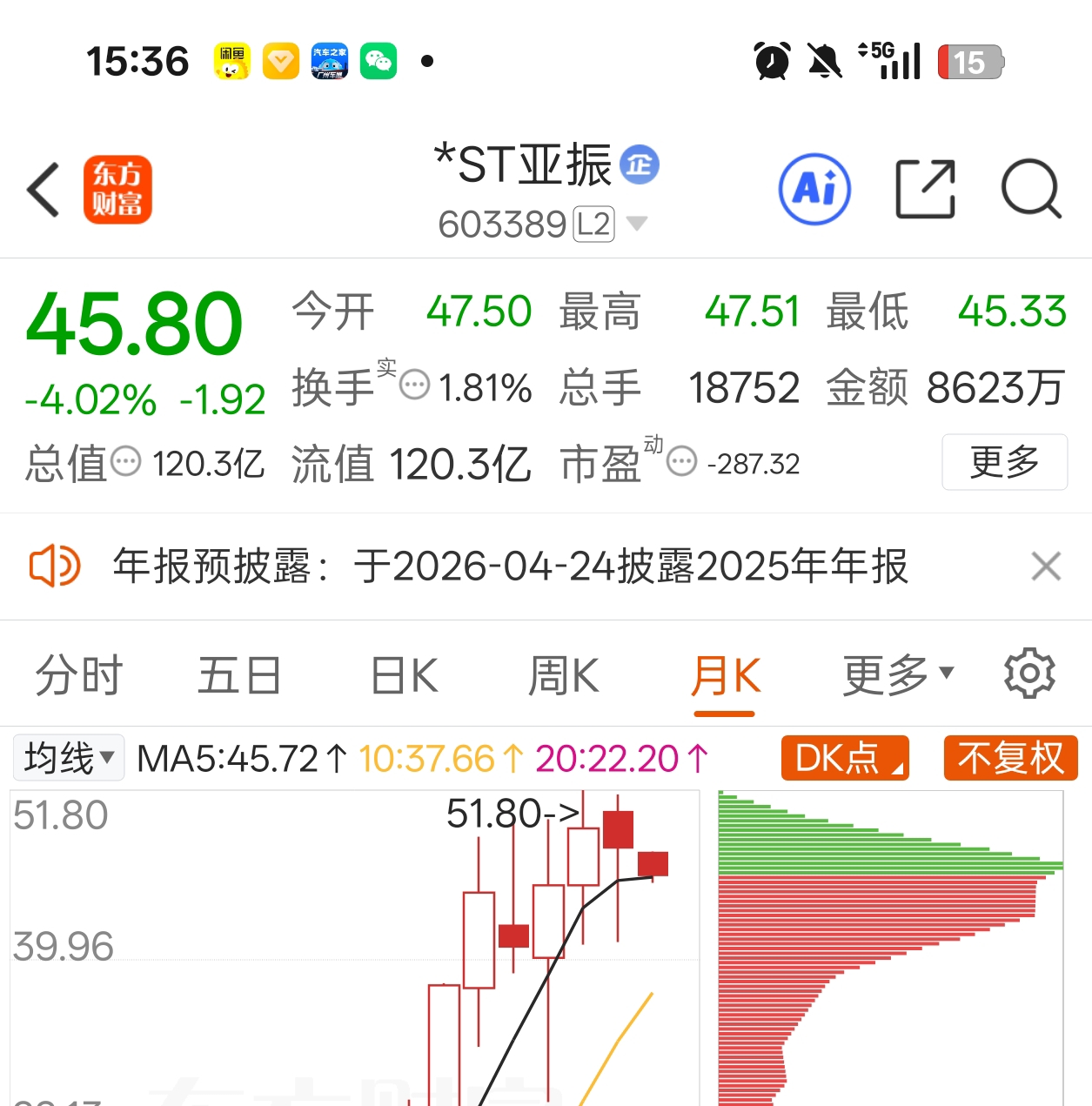 上午还懊恼卖早了,快11点跌到比我卖的价低3块我坚持没买回。它和亚振是兄弟股,今