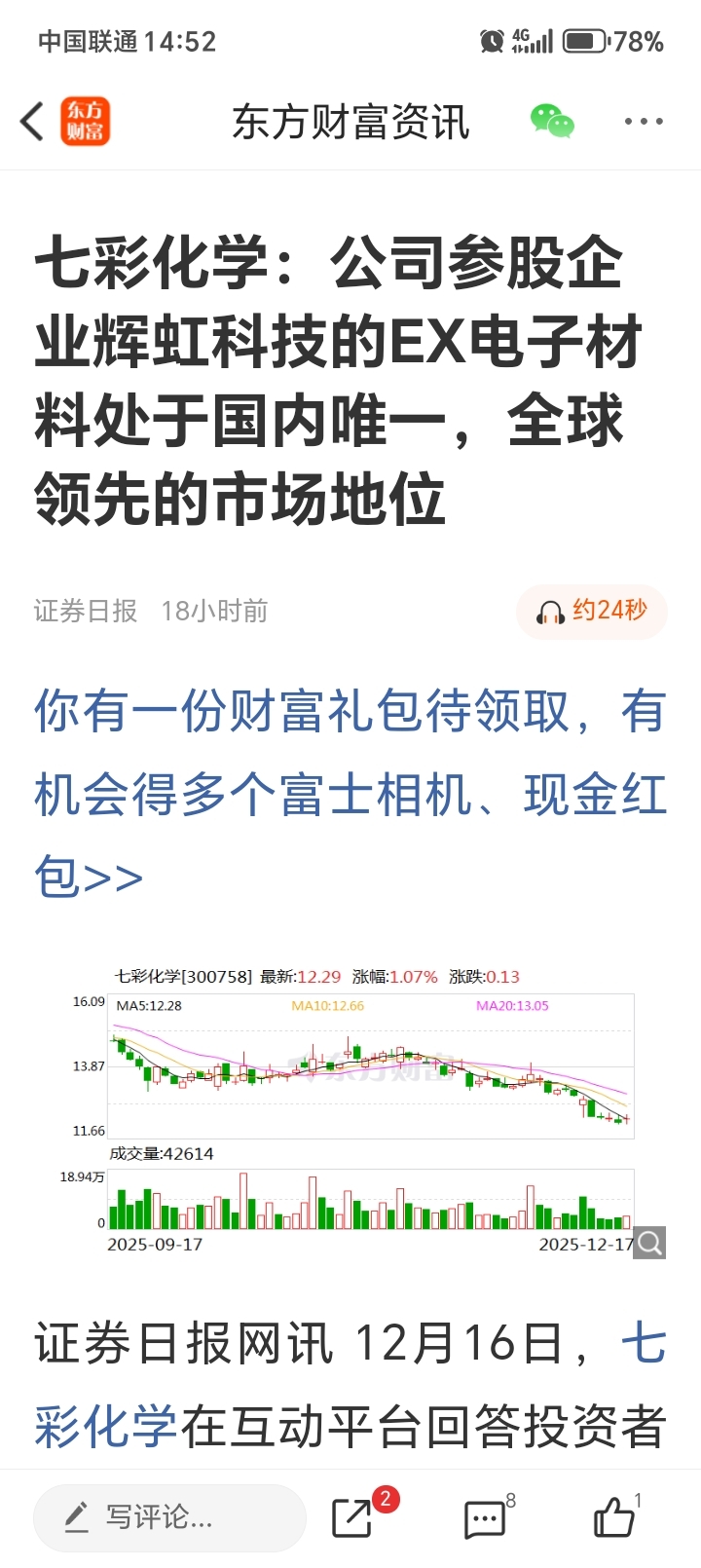 $七彩化学(SZ300758)$ 世界领先技术值得拥有买买!