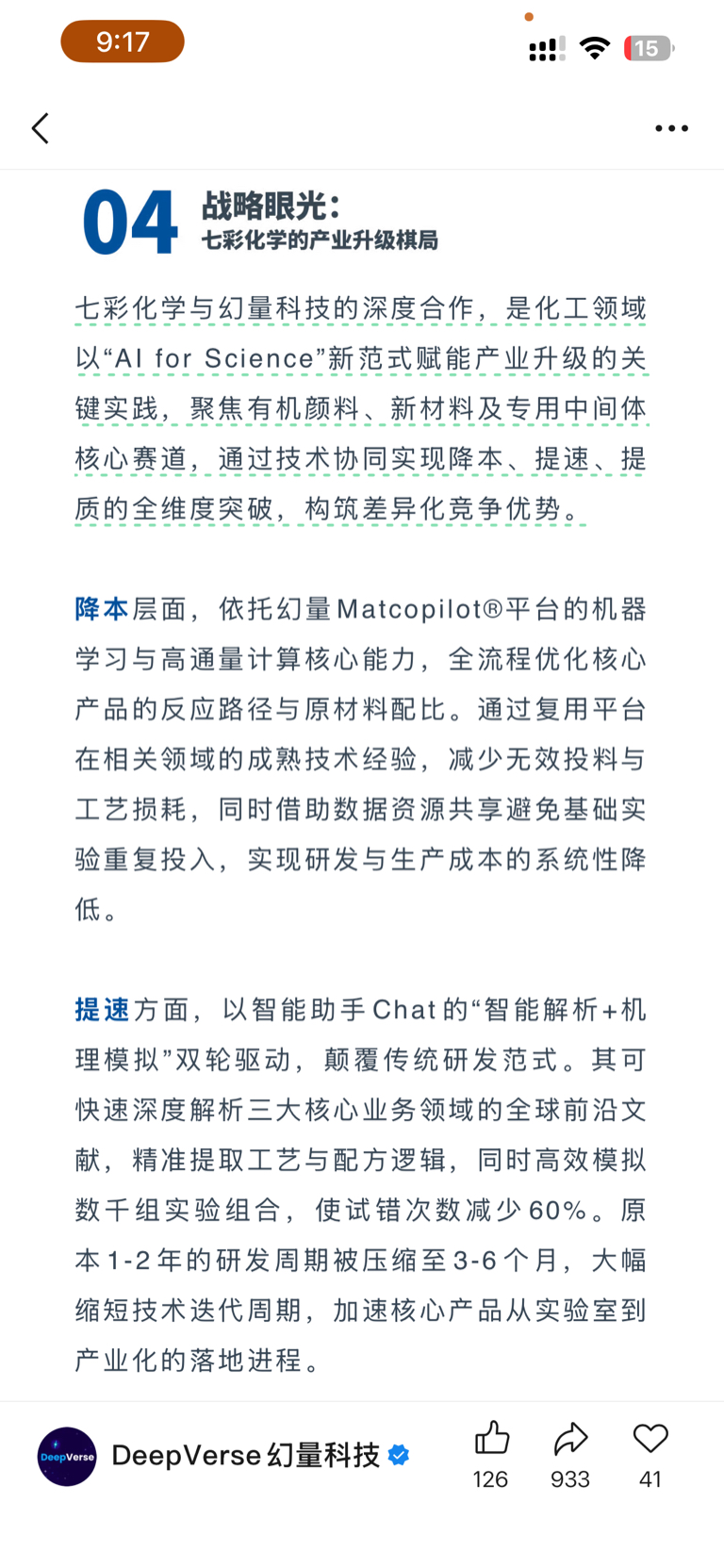 $七彩化学(SZ300758)$ $志特新材(SZ300986)$ AI4s 能走多高?七彩化学才刚刚启动。