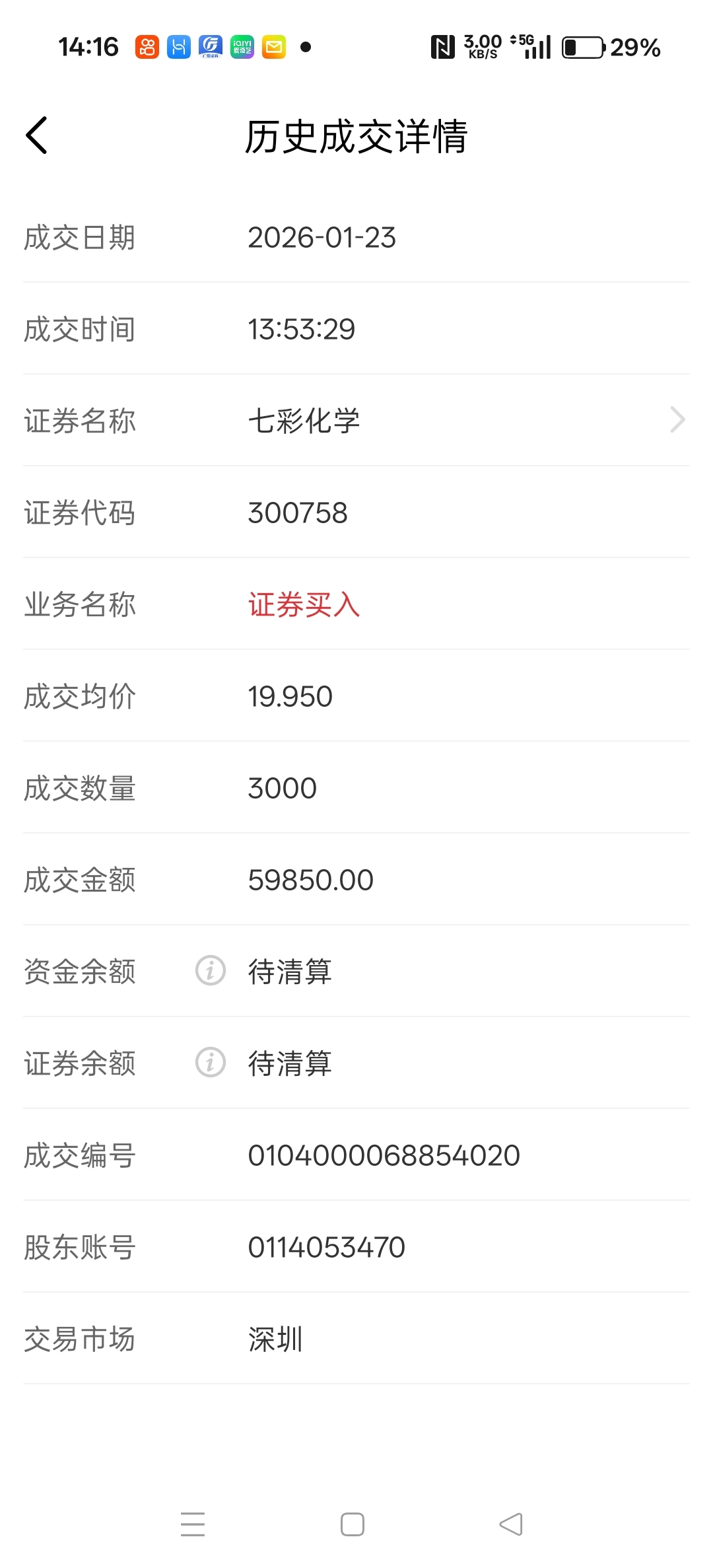 $七彩化学(SZ300758)$ 还能回本吗19.95的本金