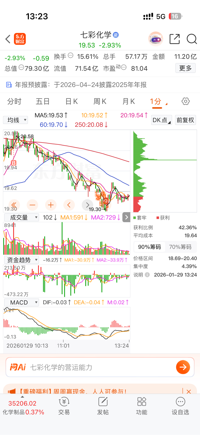 $七彩化学(SZ300758)$ 下午估计要狠狠跌了,因为我买了