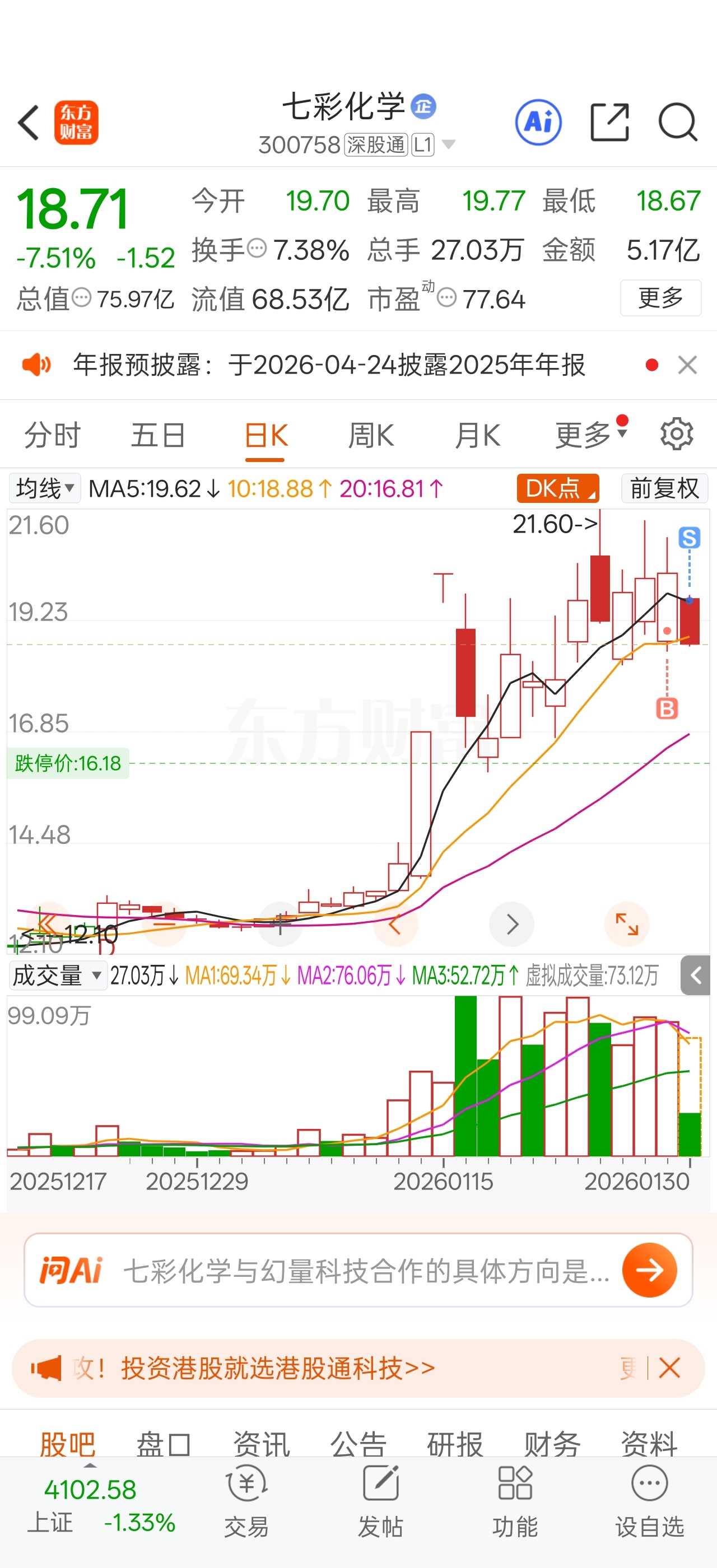$七彩化学(SZ300758)$ 锁住利润 这票废了 不再碰