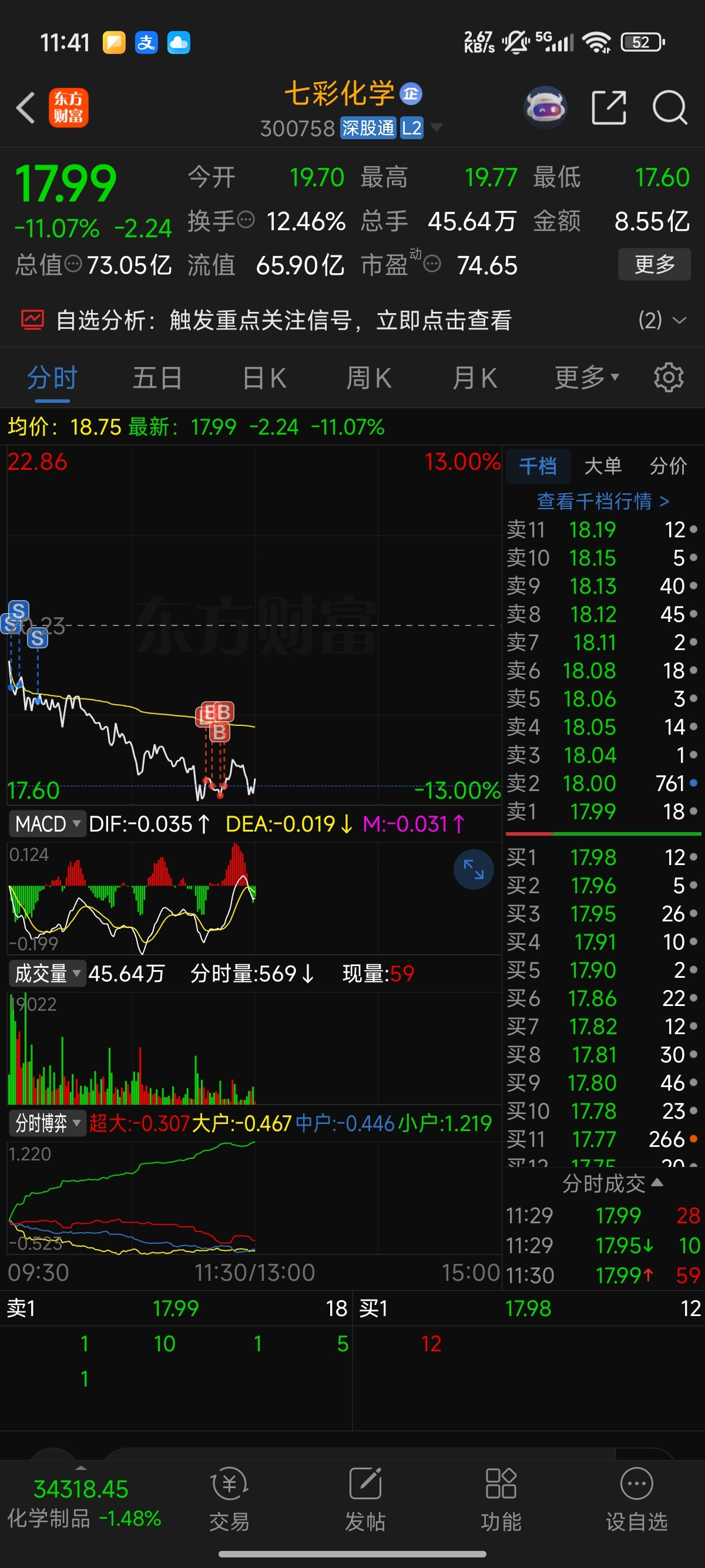 $七彩化学(SZ300758)$ 保本出又进来了