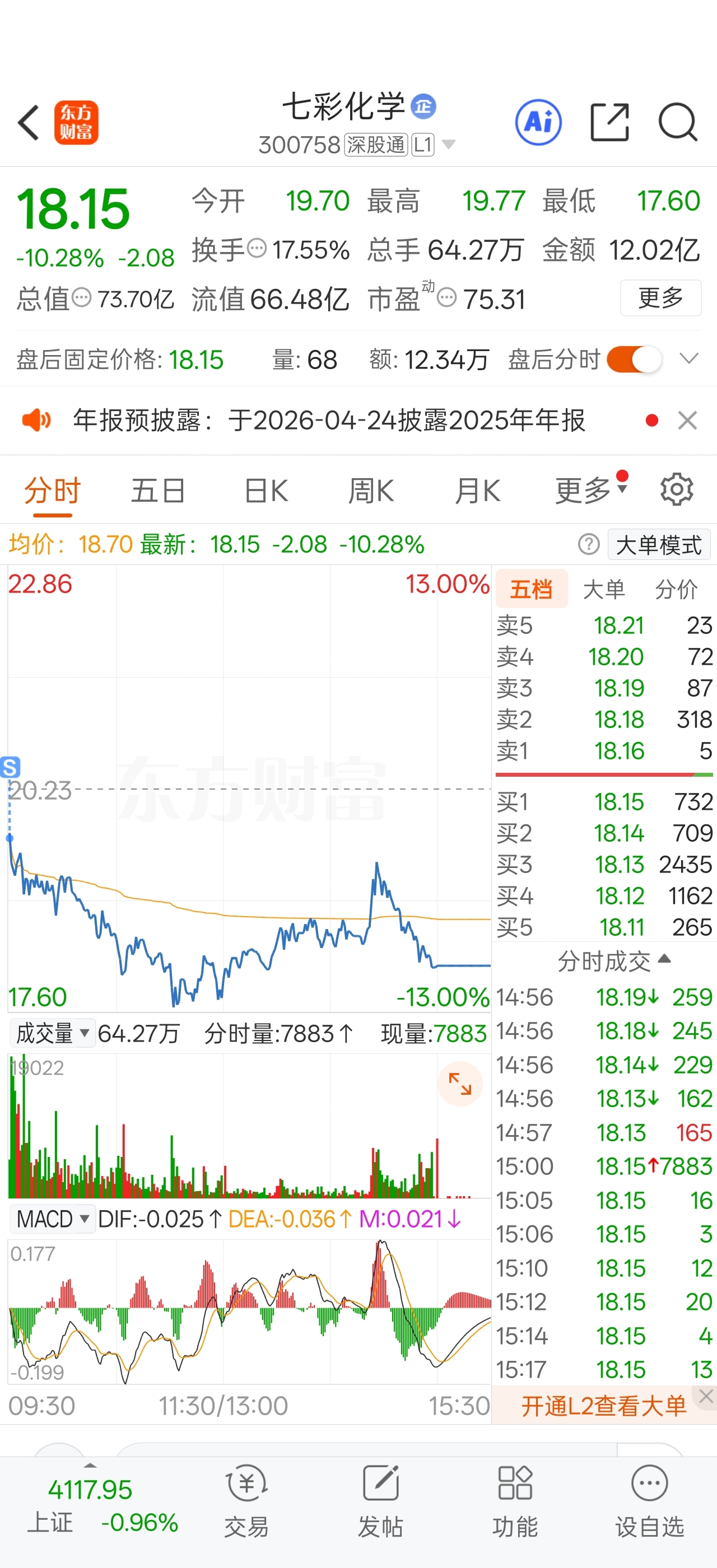 $七彩化学(SZ300758)$ 周一有大跌再来抄底 没有就算了