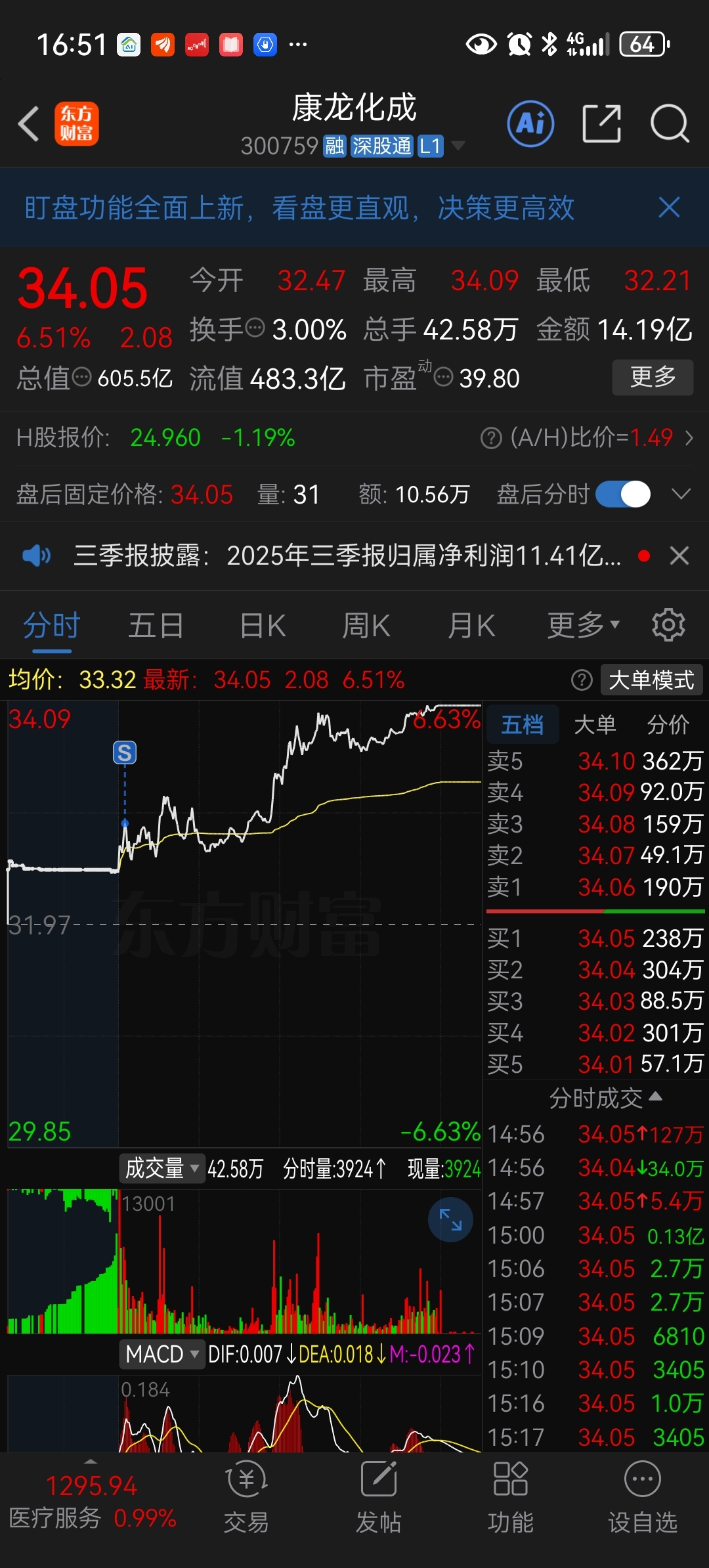 $康龙化成(SZ300759)$ 不卖的时候,每次冲高都会回落,我一卖它就一直往上冲