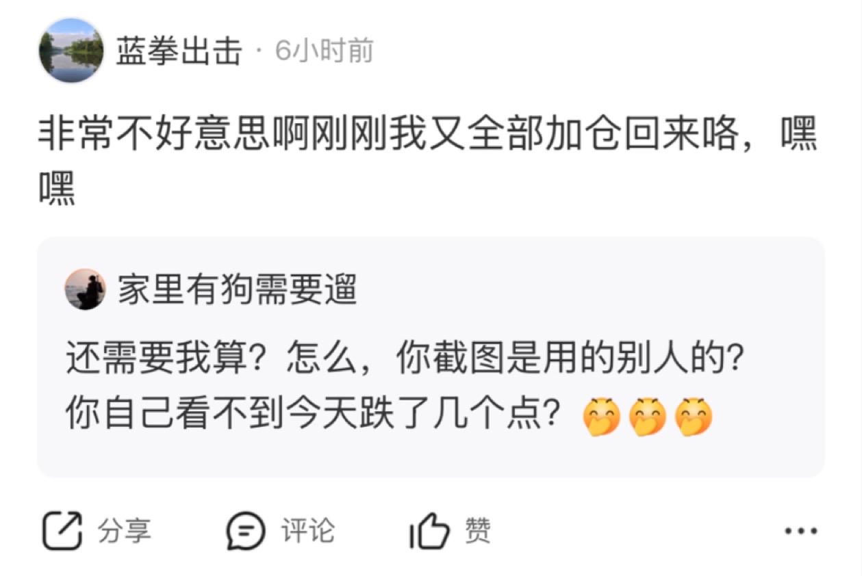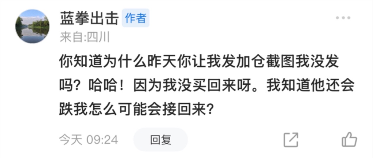 @蓝拳出击早就知道你是这种人了看着涨了就说自己买了,看着跌了就说自己没买!