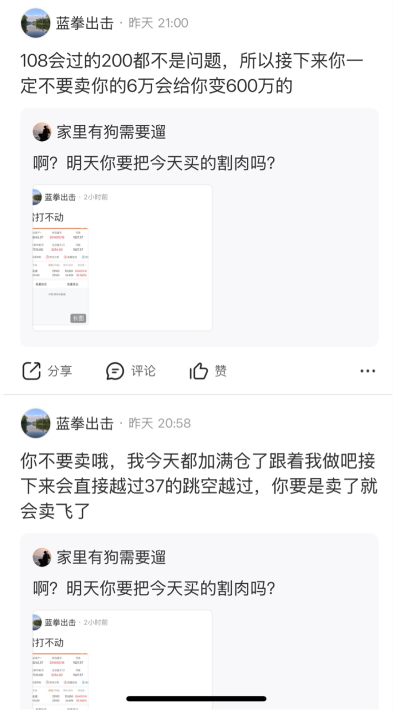 温馨提示: 1.根据《证券法》规定,禁止编造、传播虚假信息或者误导性信息,扰乱证券市场;2.用户在本社区发表的所有资料、言论等仅代表个人观点,与本网站立场无关,不对您构成任何投资建议。用户应基于自己的独立判断,自行决定证券投资并承担相应风险。《东方财富社区管理规定》