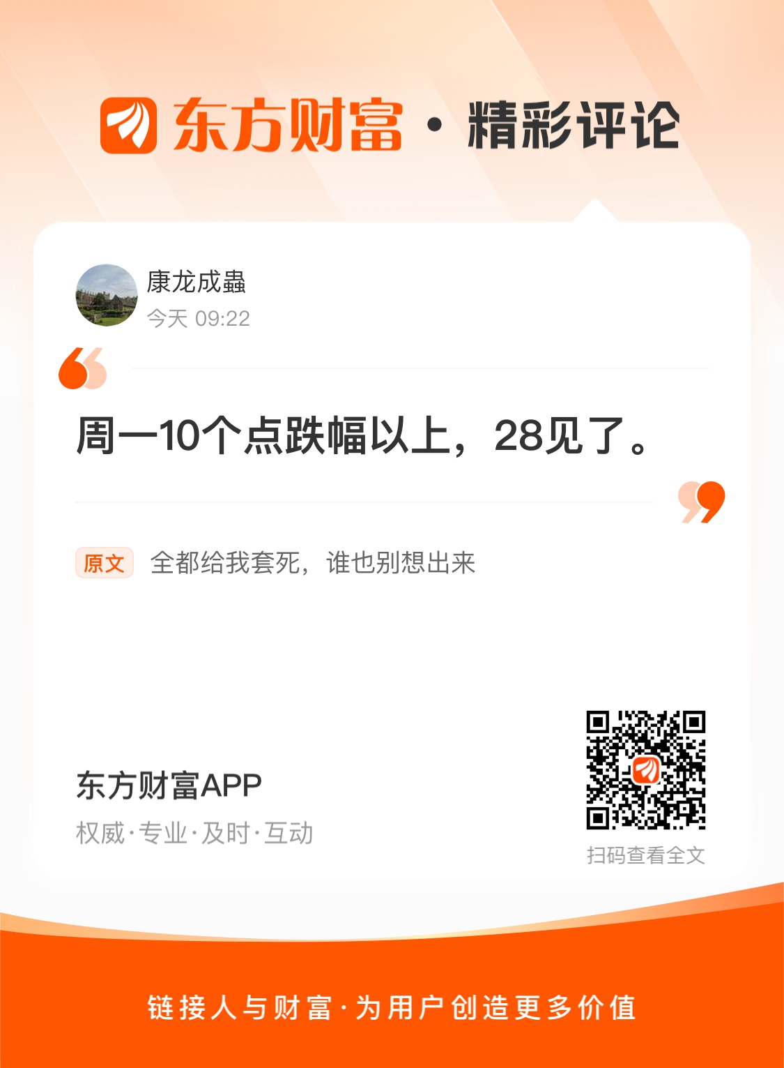 温馨提示: 1.根据《证券法》规定,禁止编造、传播虚假信息或者误导性信息,扰乱证券市场;2.用户在本社区发表的所有资料、言论等仅代表个人观点,与本网站立场无关,不对您构成任何投资建议。用户应基于自己的独立判断,自行决定证券投资并承担相应风险。《东方财富社区管理规定》