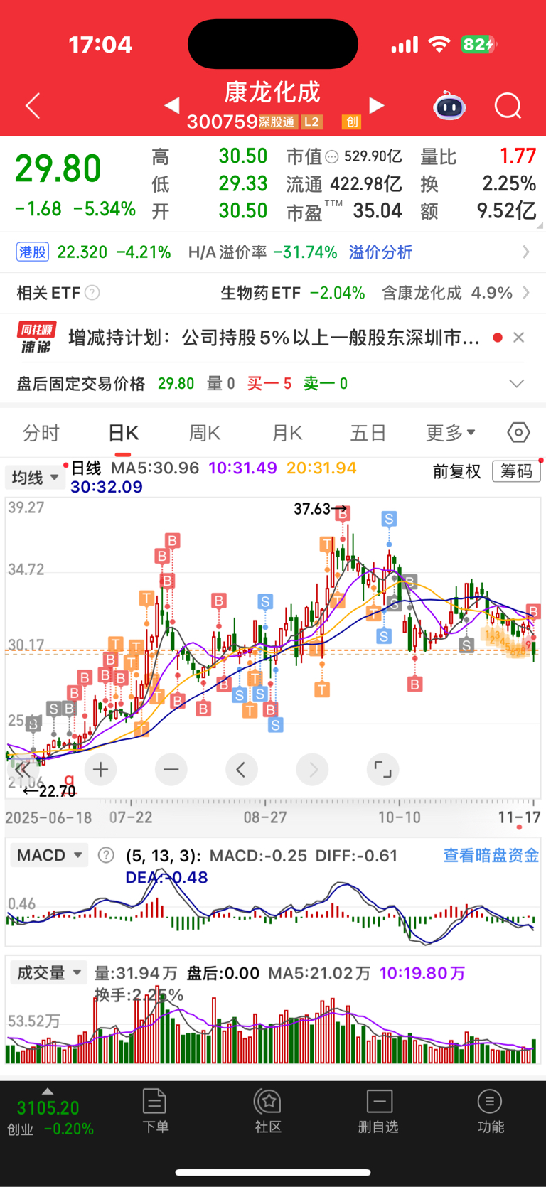 $康龙化成(SZ300759)$ 兄弟们今天我进来啦,周五催减持就进,今天来陪你们了
