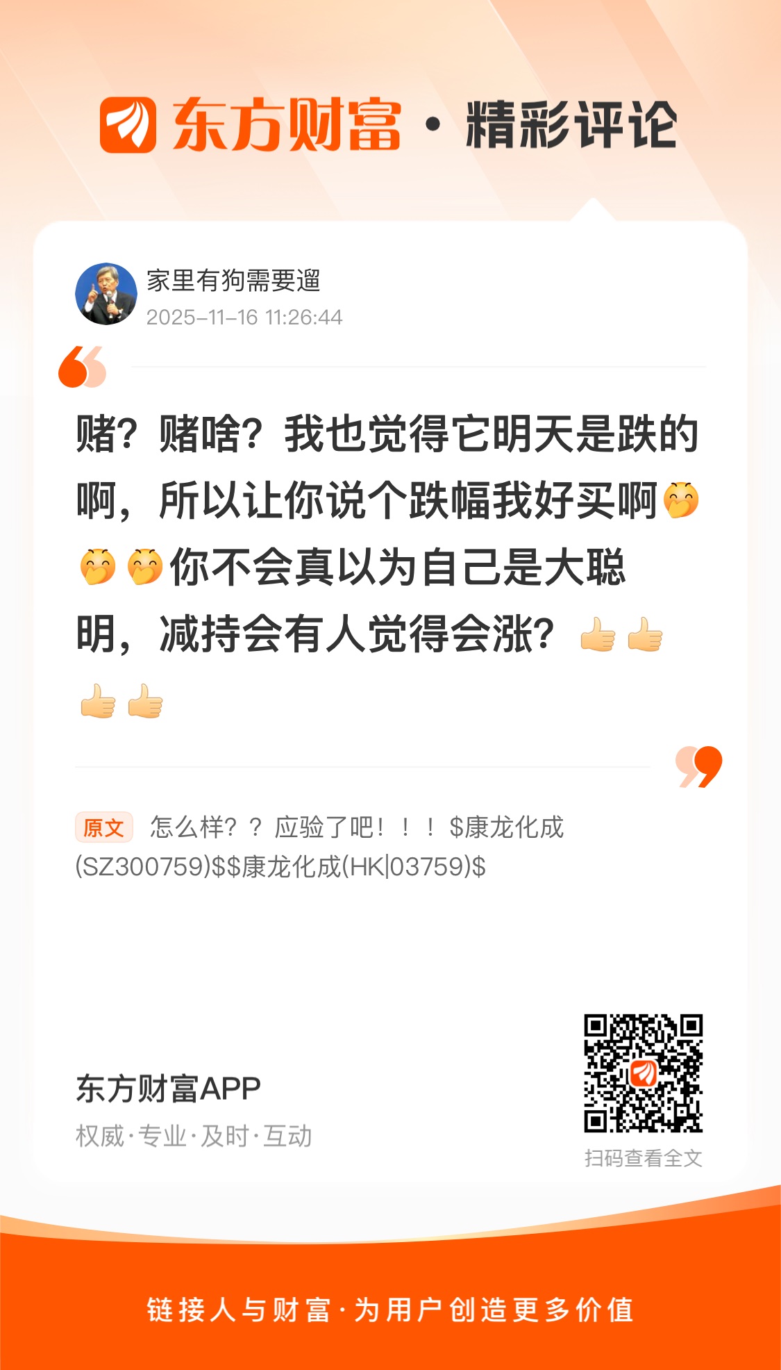 温馨提示: 1.根据《证券法》规定,禁止编造、传播虚假信息或者误导性信息,扰乱证券市场;2.用户在本社区发表的所有资料、言论等仅代表个人观点,与本网站立场无关,不对您构成任何投资建议。用户应基于自己的独立判断,自行决定证券投资并承担相应风险。《东方财富社区管理规定》