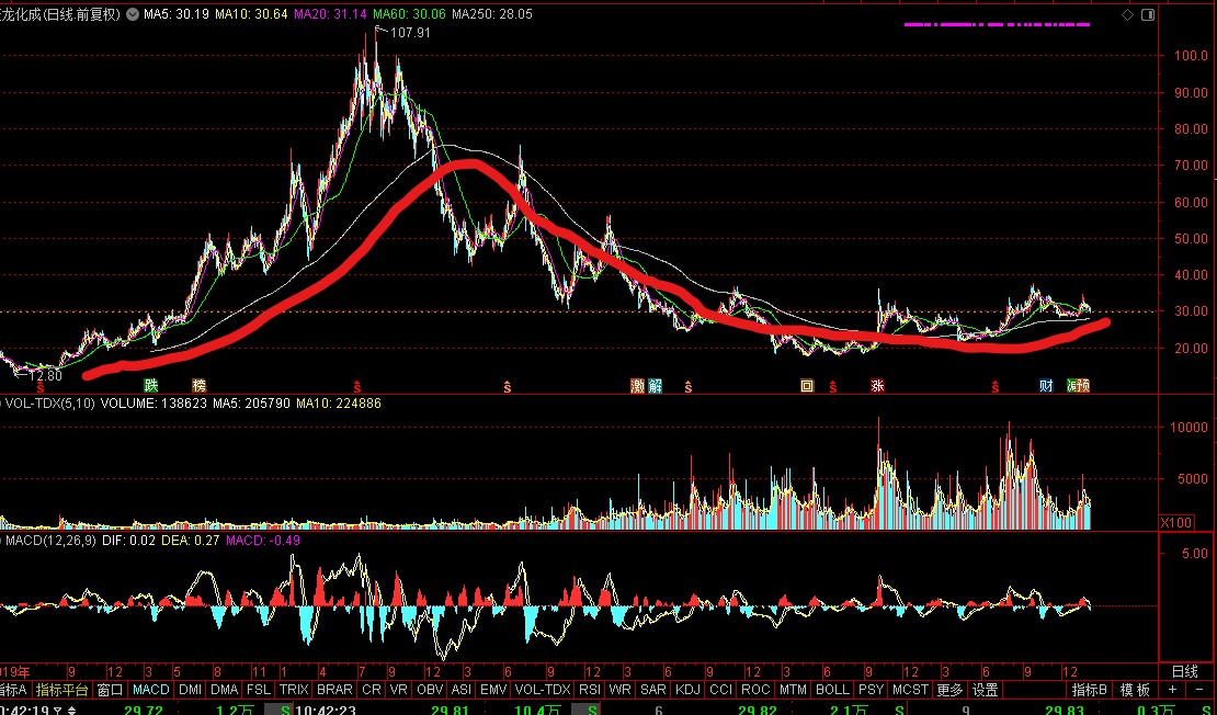 这个年线圆弧底附近性价比还是很高的,近期短线没法做了,当短线不好做时长线机会就来了,30元附近今天搞了37W,如下来再加仓,放个半年看能不能到60元。