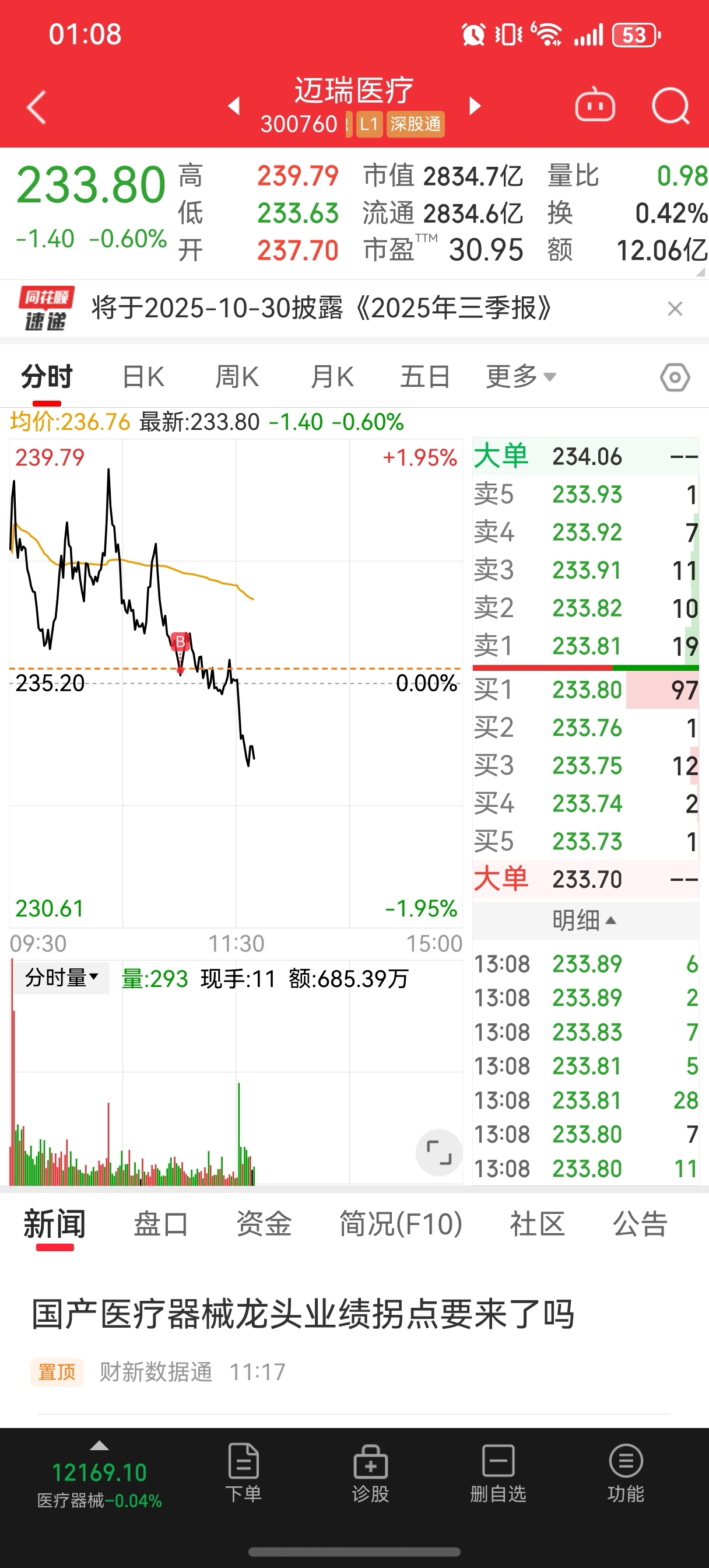 $迈瑞医疗(SZ300760)$ 别坑我哇哈哈