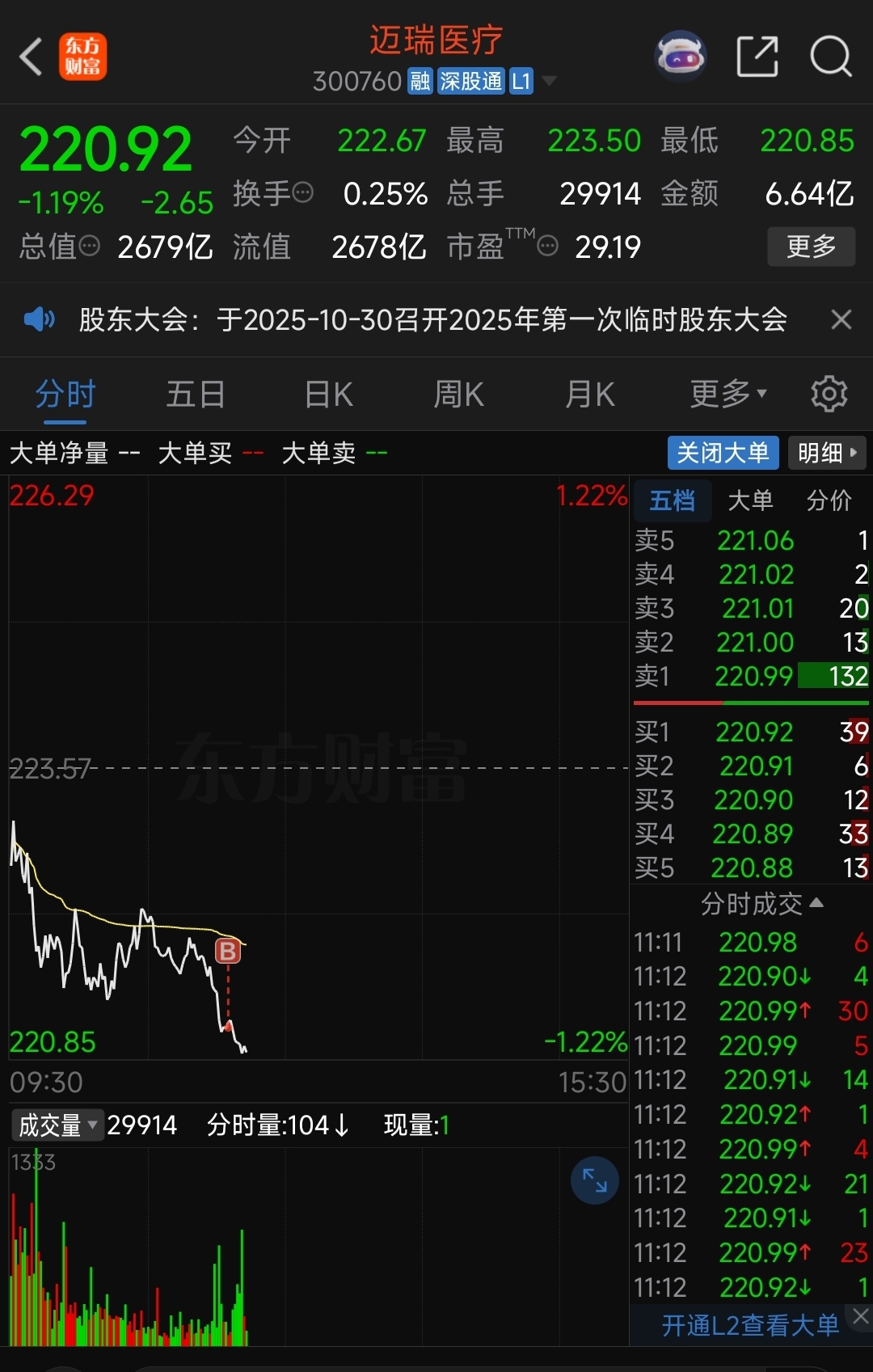$迈瑞医疗(SZ300760)$ 再跌就没钱加仓了