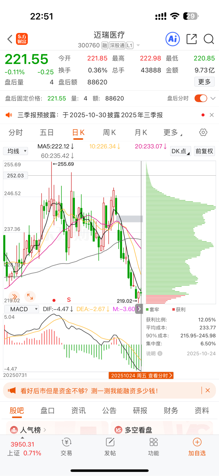 $迈瑞医疗(SZ300760)$ 这么多套牢盘